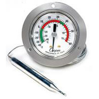 The 6142-58 features a front flange, back connect, flush mount. It has a 2" dial diameter and 48" capillary. It features three (3) .156" diameter mounting holes equally spaced on 240" diameter bolt circle.