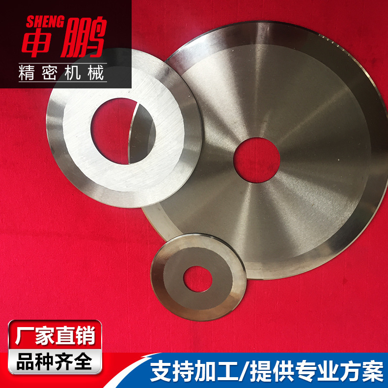 申鹏精密机械厂销售的各类不干胶分切刀片,塑料分切机刀片,钢管分切圆刀片,布料分切机专用刀设备精良,产品种类多,技术力量雄厚,售后服务完善,产品的各项性能指标好,在国内享有产品种类多、规格全。大部分产品现货供应,非标产品可根据客户提供的产品图纸、规格及刀片材料、HRC值等要求加工定做。质量优质,价格优惠。订购时请提供: 分切刀片品种,用途,尺寸,精度要求和材质要求等资料或直接将图纸传真给我们,标准常用刀片一般有现货,请与我们联系,我们将及时满足客户的需求。