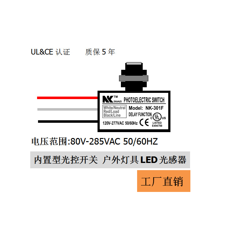 Фотоэлектрический выключатель NK-301F переключатель управления освещением Светодиодная лампа датчик освещенности UL CE гарантия на пять лет