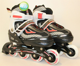 刹车: 单脚刹车 。右脚有刹车,左脚没有刹车。刹车装置,性能更高。本款直排伸缩溜冰鞋,经过精心设计可根据用户的脚型大小自由调节尺码,制动灵敏的刹车及高强度塑料支架,、实用,在保证您的同时,还能有一种象风一样的飘逸和自由的感觉,穿着它在城市中穿行一定会让你爽个够。