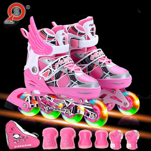 Производитель оптом комплектов роликовых коньков для начинающих, регулируемых по размеру, с полным флисом, однорядные, четырехколесные, для трансграничной торговли