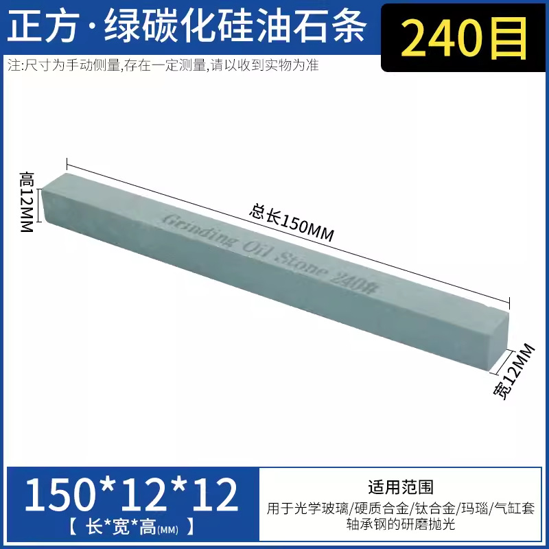 绿碳化硅精磨油石:硬度高、脆性大,磨粒锋利,导热性好。 适用于硬质合金刀具、工件及有色金属、非金属等的磨削。