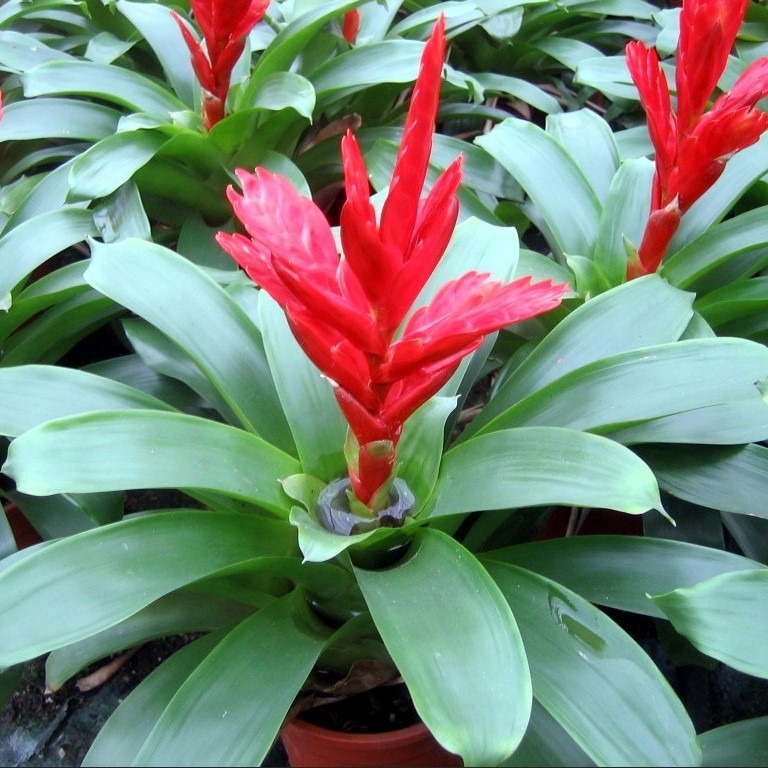 Производитель поставляет в горшках декоративные растения семейства бромелиад, такие как каладиум и антуриум, для использования в саду и в помещении, оптом.