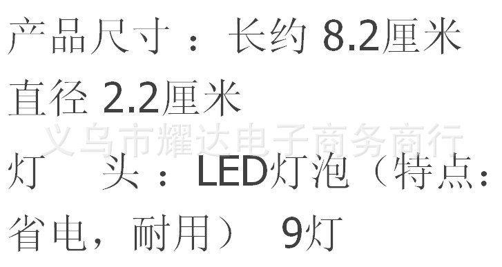 2、配备9粒超白光LED,寿命长达10万小时,为长时间照明作足准备。