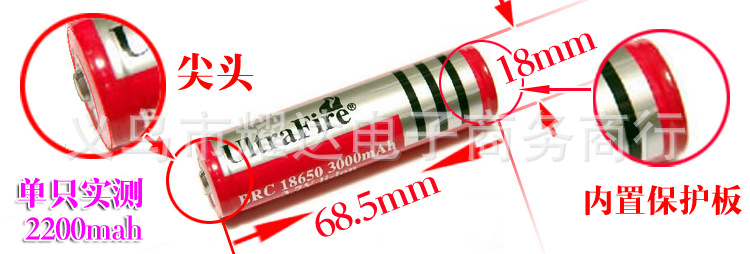 1、最新ultrafire BRC 18650 3000mAh 3.7V 带保护锂电池,超大3000mAh电池容量,市场上最高容量(据ultrafire官方资料);