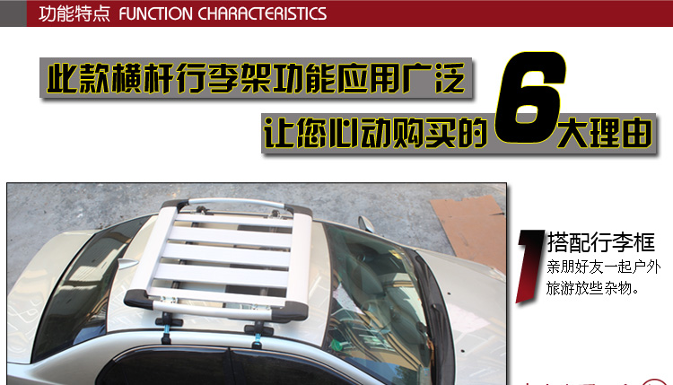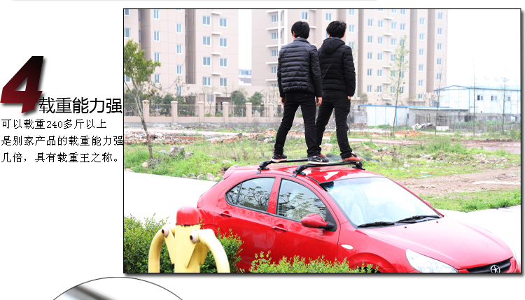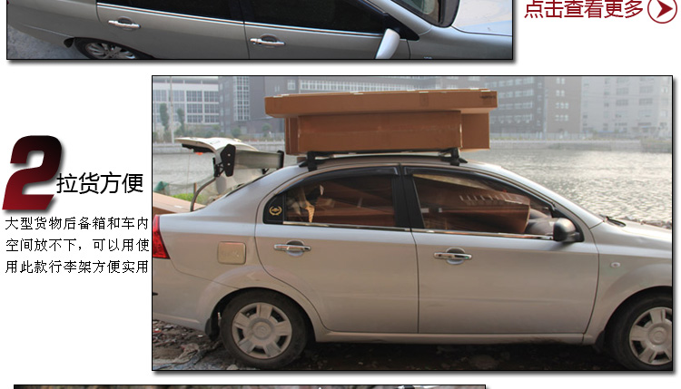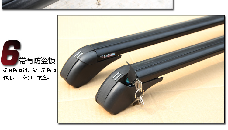 产品简介:行李架包装2件/套,铝合金材料、带锁,载重150公斤内,适用 于大部分二厢三厢及商务不带雨槽车型,产品表面喷黑处理。