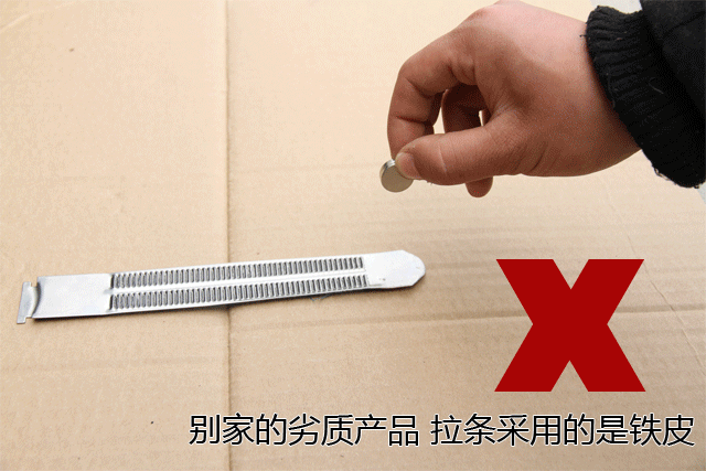 别家的产品拉条采用的是铁皮 不耐用易生锈,使用不安全。是一些小型的加工厂生产,质量没有保障。