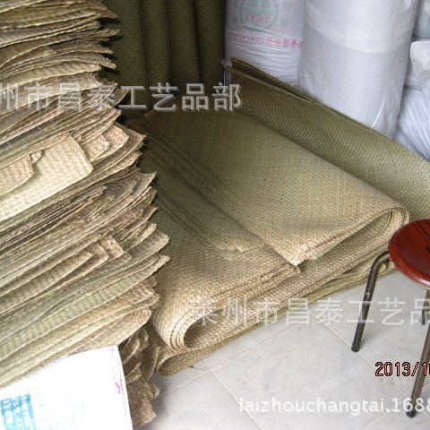 水草编织而成,一个工人 大概需要12个小时制作一张,大概用1.5公斤材料。