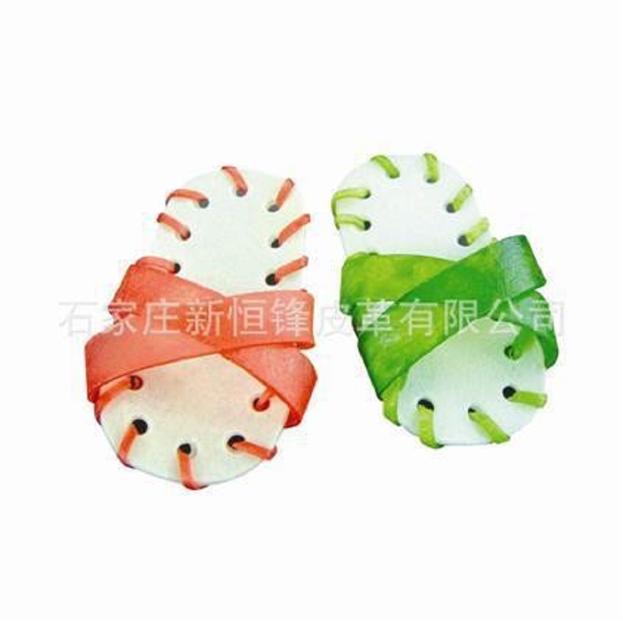这款牛皮拖鞋,是选用天然牛皮精心熬制成的,食用安全,可完全消化。它既可提供给爱犬一些必须营养,如:蛋白质、维生素等,又可给爱犬磨牙,满足犬爱咀嚼的天生嗜好,还可强壮齿龈和颚骨,清洁口腔,消除牙垢。另外,狗咬胶还可作为爱犬的玩具,避免其咬坏日常用品。是犬科动物源于天性喜欢的健康食品之一。