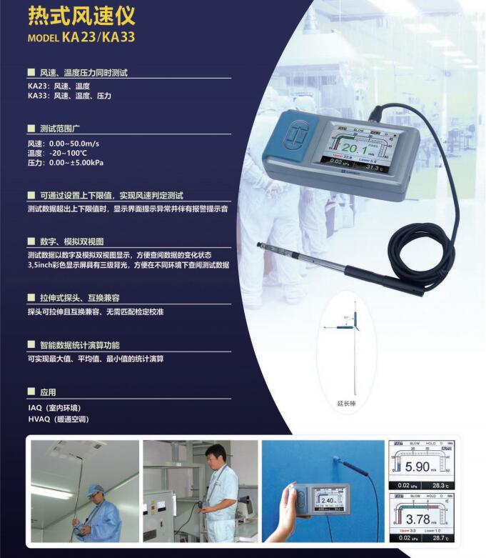 KA23热线式风速计同叶轮风速计相比,测试精度高,更易测试狭小空间的气流