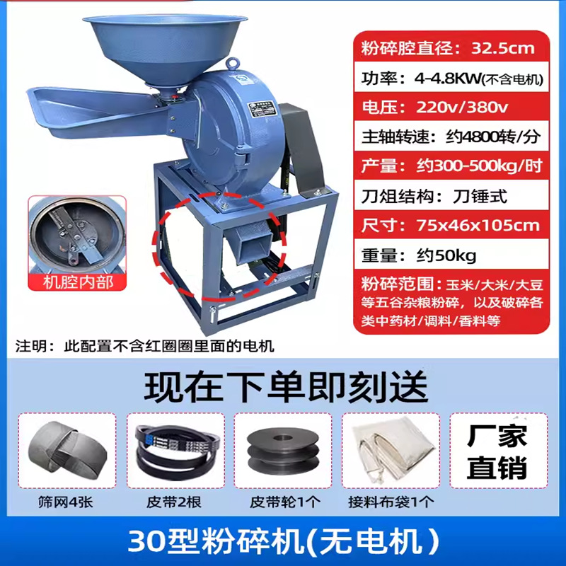 机粉碎饲料/谷物/食品/药材/枝叶等简单易用,是农家商家之物之一。