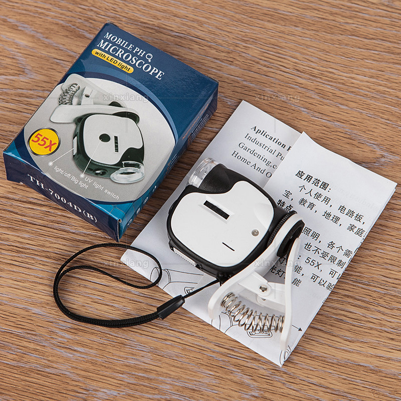 Новый 55-кратный мини-микроскоп со светодиодной подсветкой для мобильного телефона, УФ-детектор денег, ювелирное увеличительное стекло высокой мощности