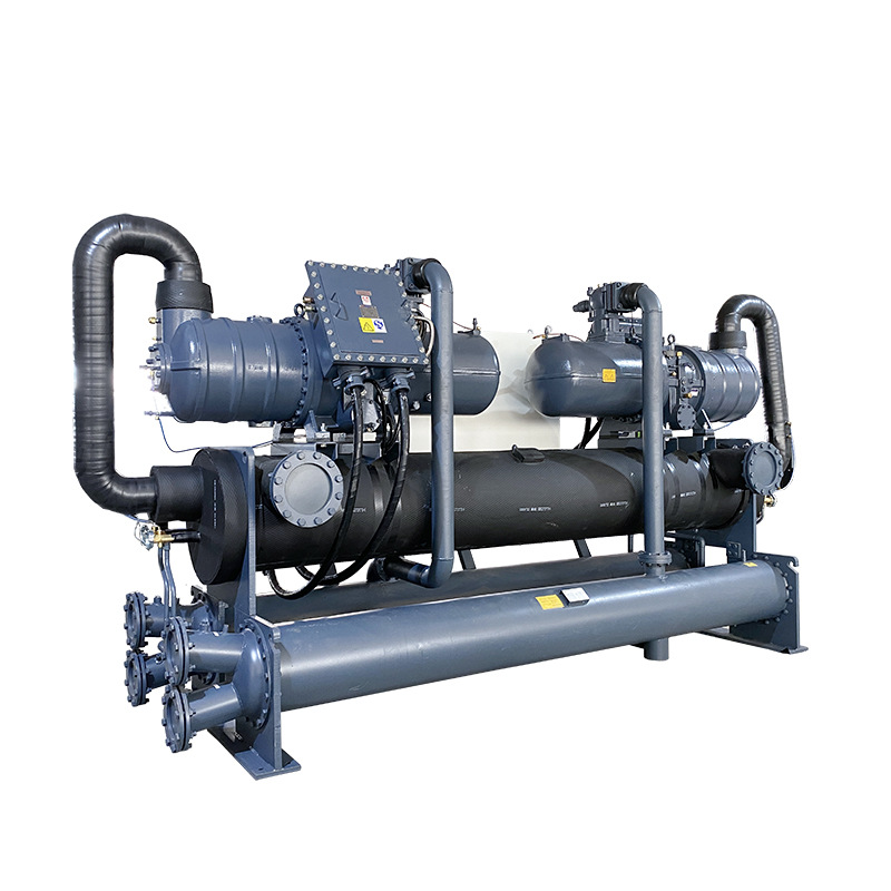 Водяной охлаждаемый винтовой чиллер, низкотемпературный спиральный холодильный агрегат до -5°C, взрывозащищенный промышленный водяной чиллер.