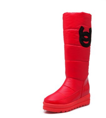 Белые/черные/красные зеркальные сапоги из искусственной кожи с рукавами, зимние сапоги, средние сапоги, женские сапоги JGB2013N000747