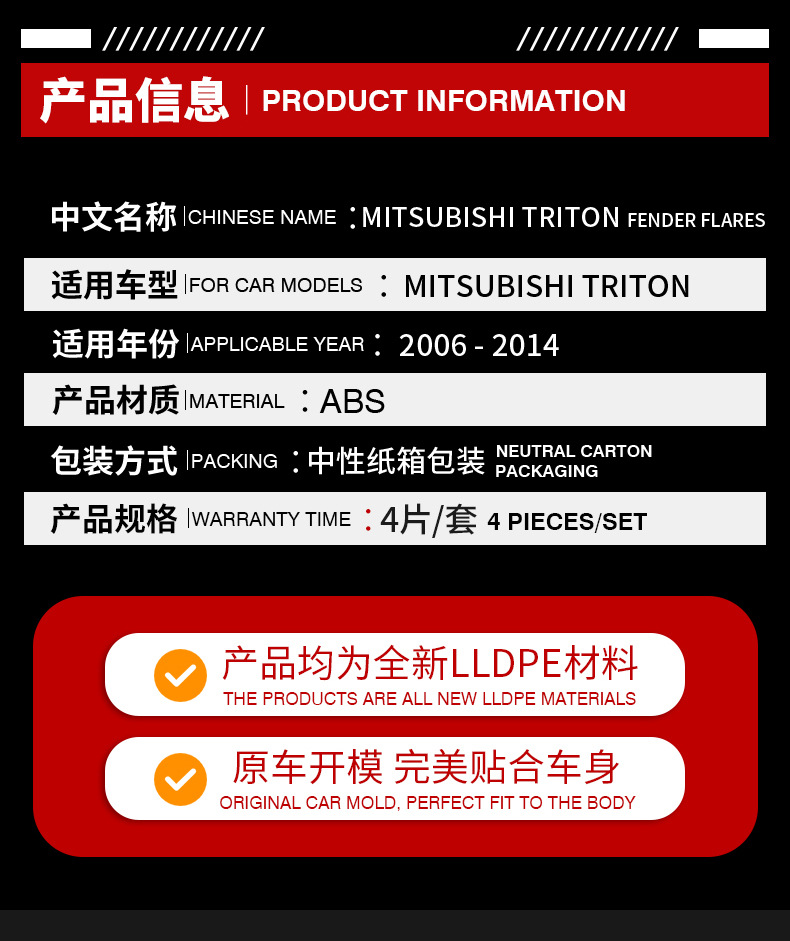 Подходит для колесных арок Mitsubishi Triton MITSUBISHITRITON06-14FENDERFLARE, расширенная модель.