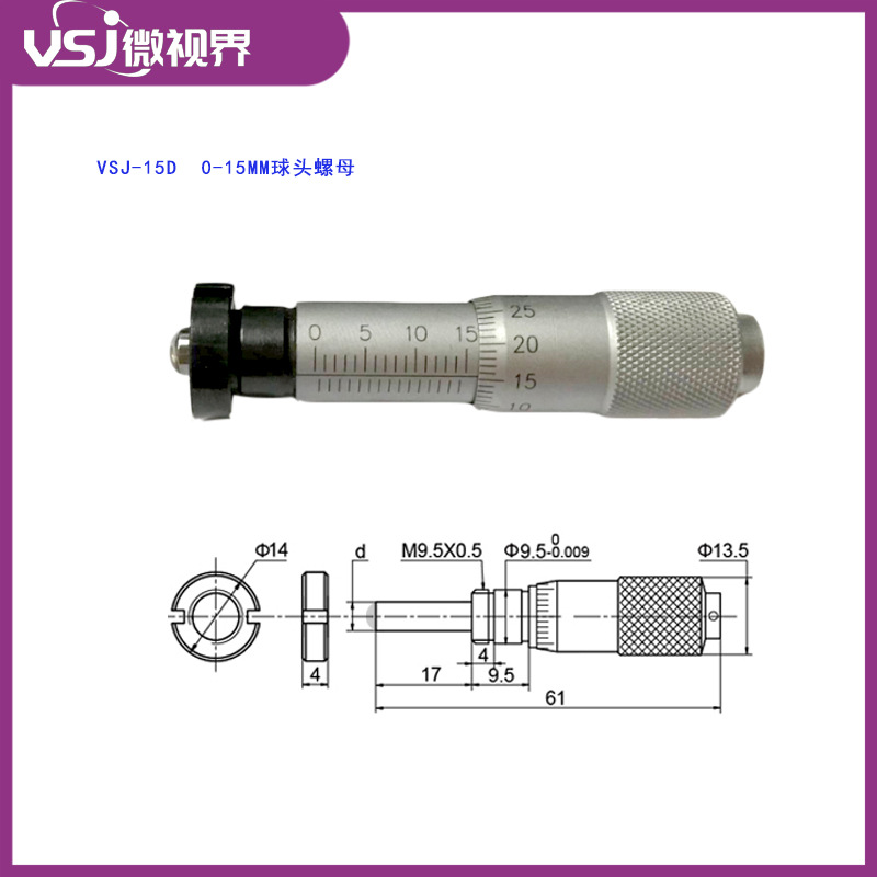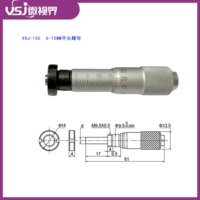 厂家直销0-15mm平头测微头0-15mm带螺母微分头