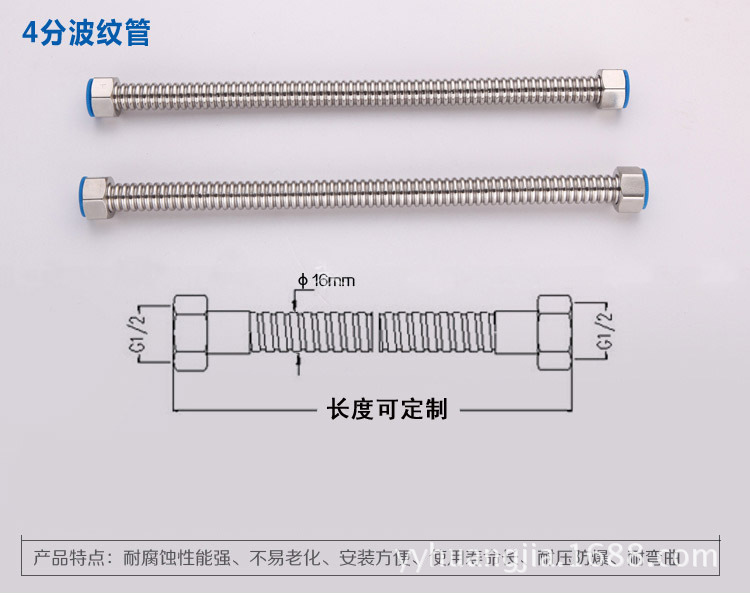 防爆裂:波纹型设计,提高自身扩张率,承压18公斤(普通家用水压3公斤左右)