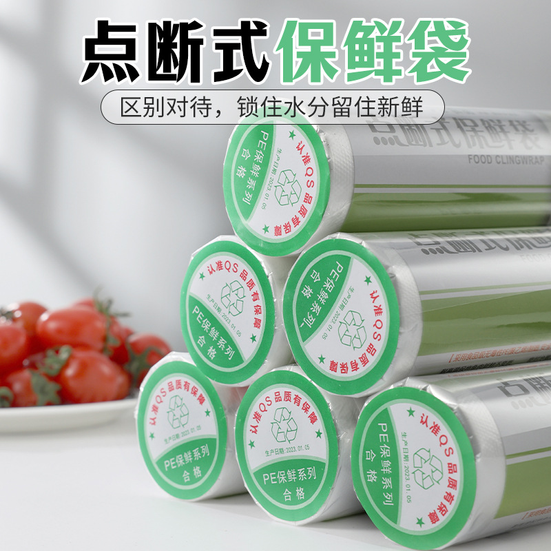 Производители продают оптом большое количество пакетов для хранения в свежем виде, утолщенные рулонные пакеты для пищевых продуктов, бытовые герметичные пакеты с точечным разрывом, пакеты для хранения холодильников