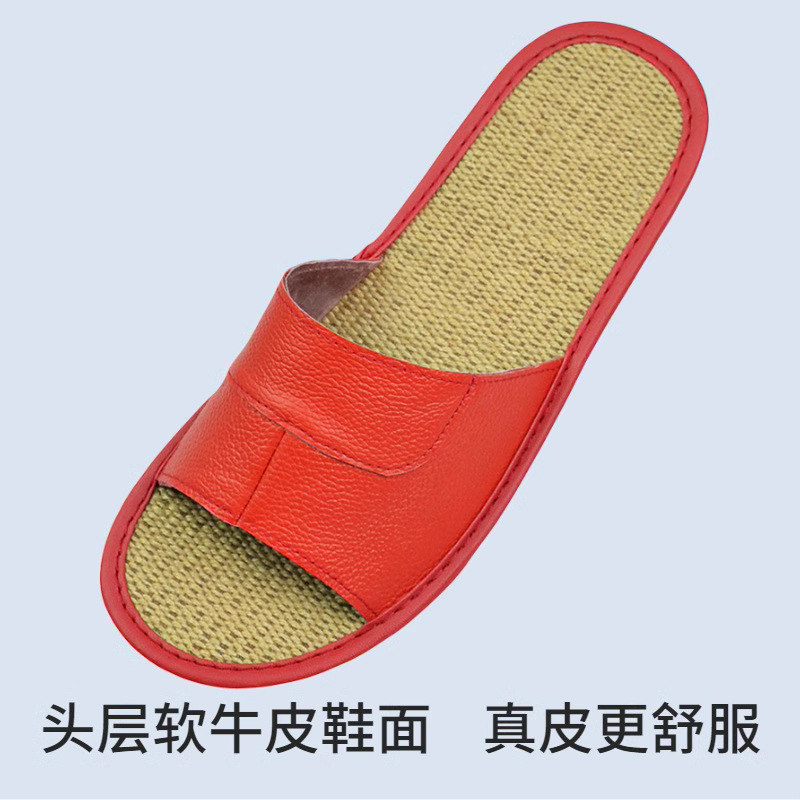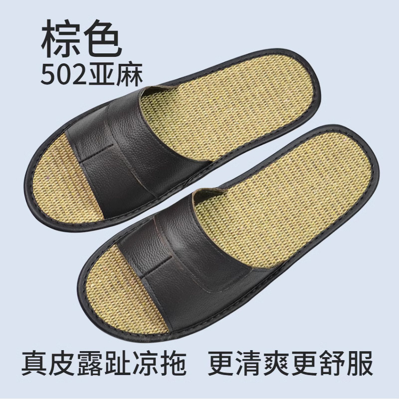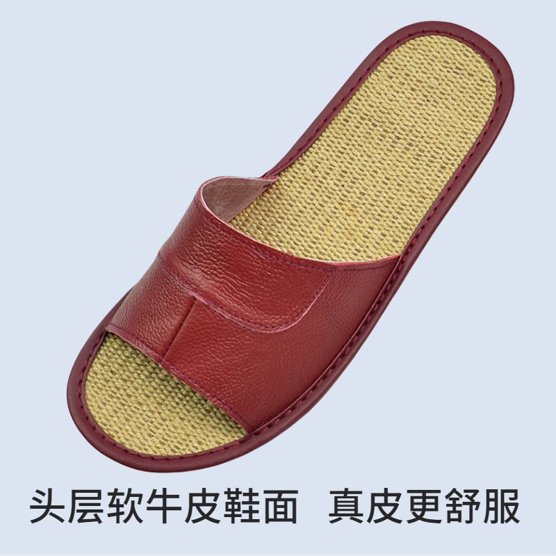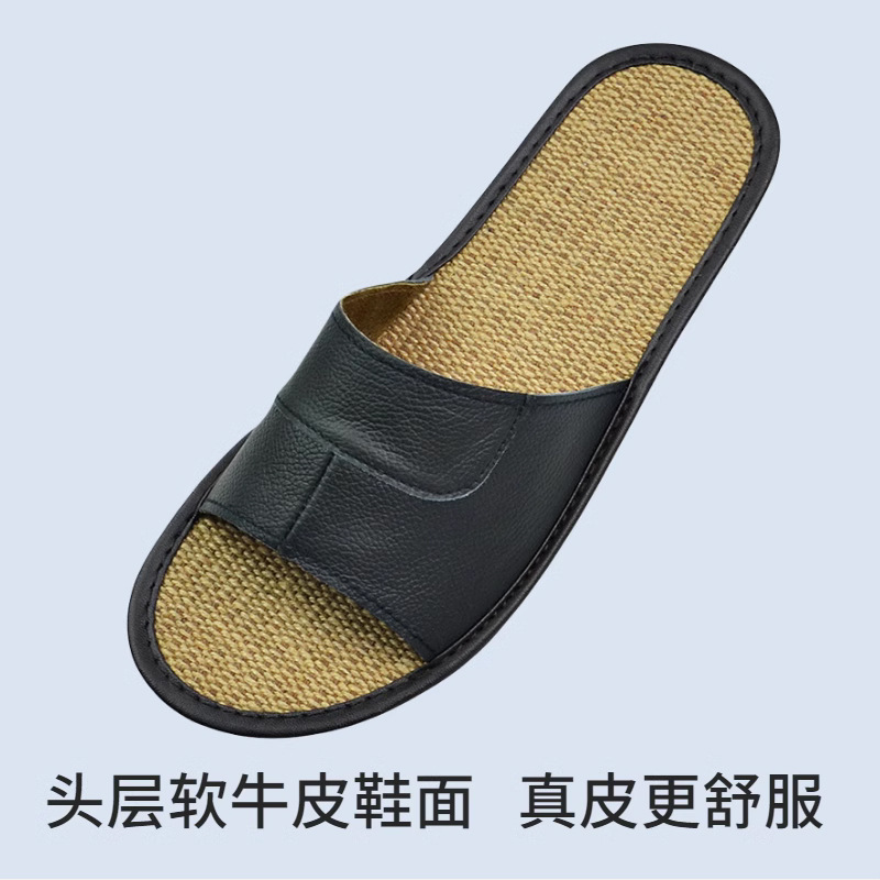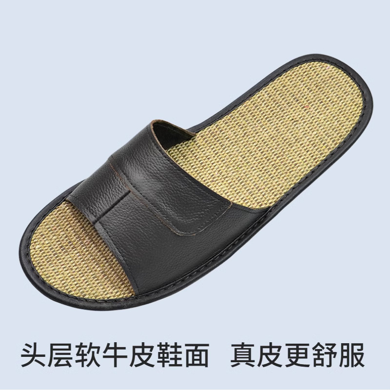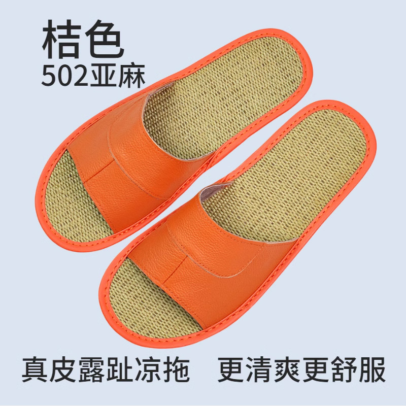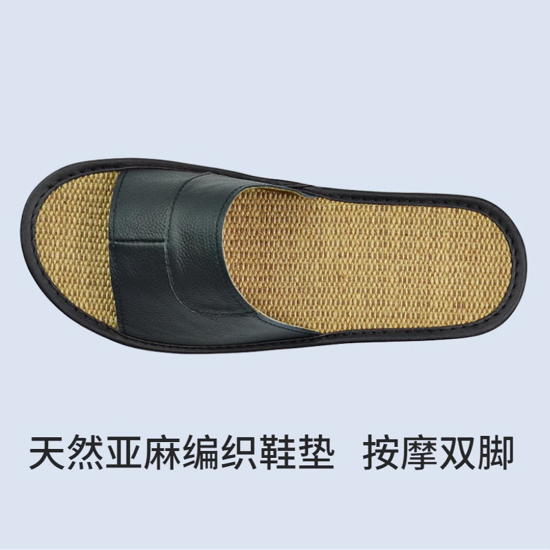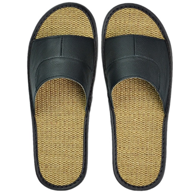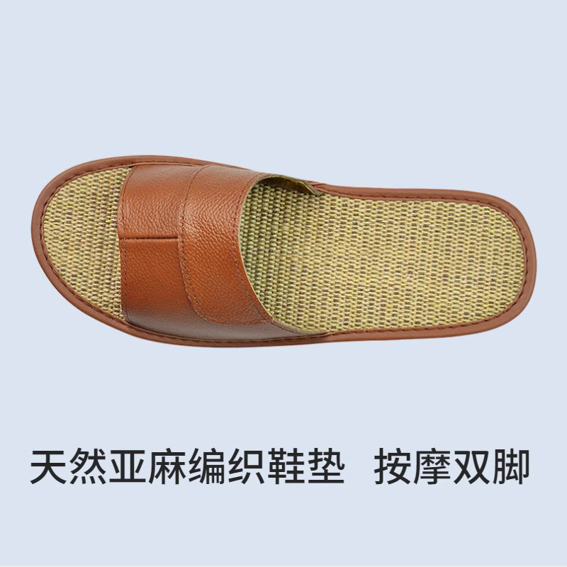 Тапочки из натуральной кожи Сандалии из первого слоя воловьей кожи и льна Тапочки на весну и лето для мужчин и женщин, домашние Нескользящие домашние с мягкой подошвой и открытым носком