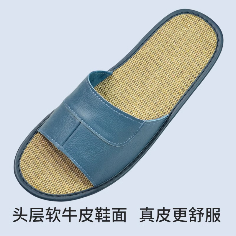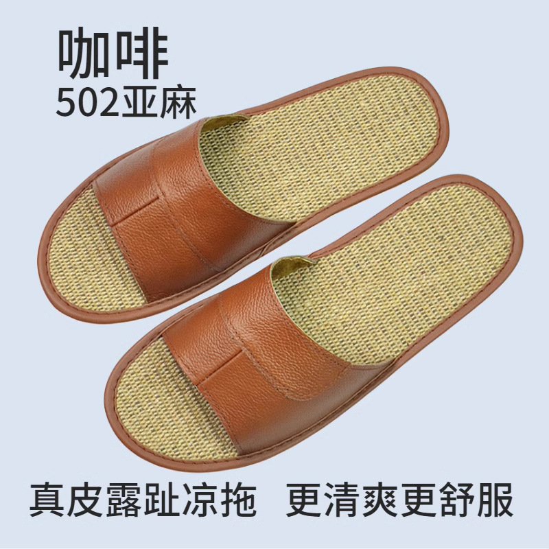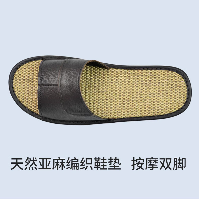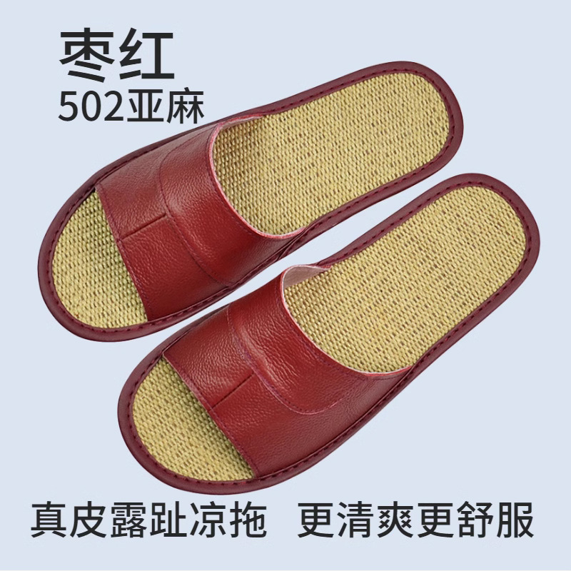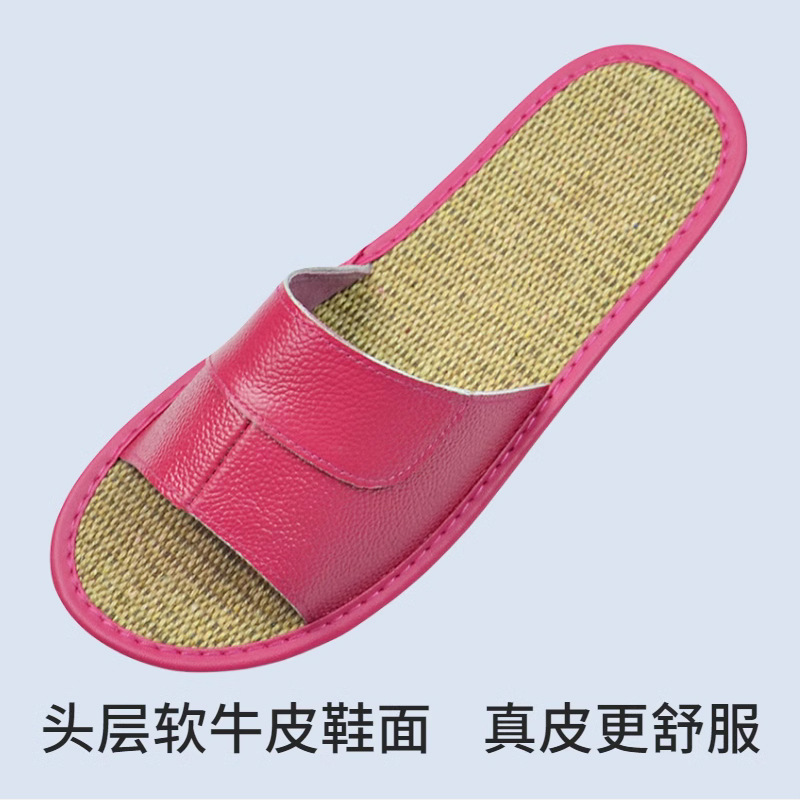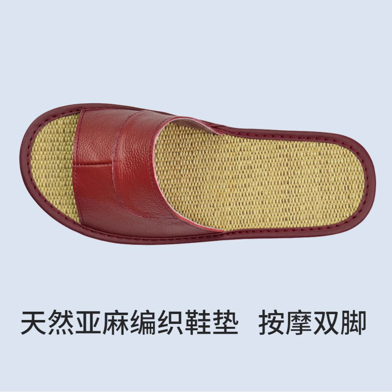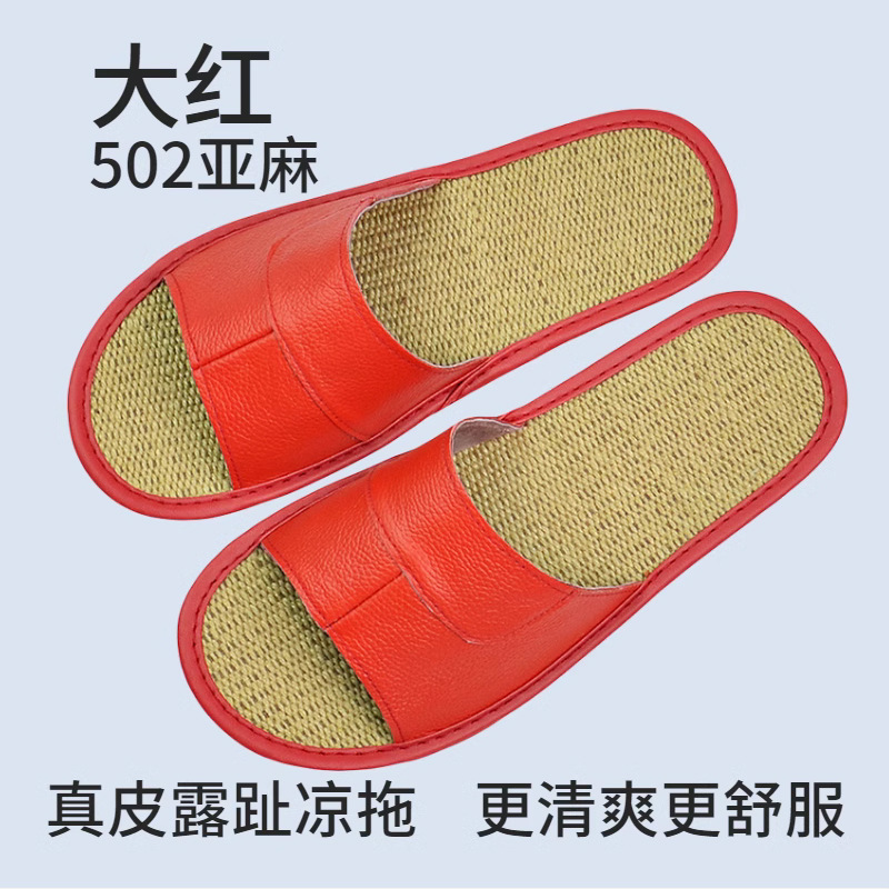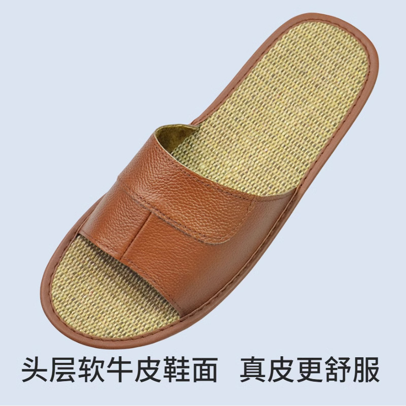 Тапочки из натуральной кожи Сандалии из первого слоя воловьей кожи и льна Тапочки на весну и лето для мужчин и женщин, домашние Нескользящие домашние с мягкой подошвой и открытым носком