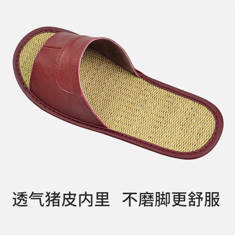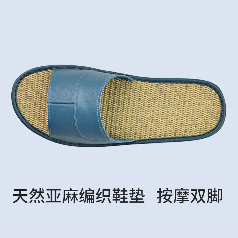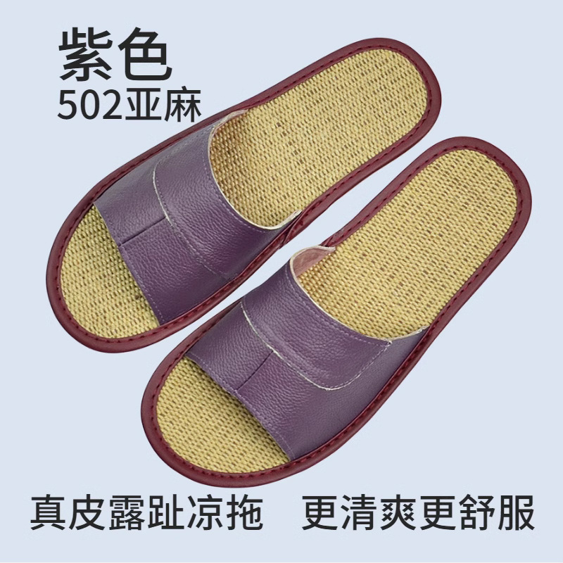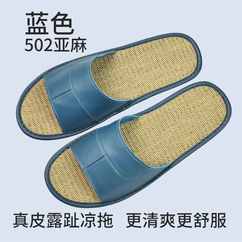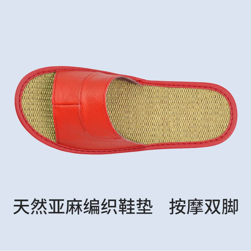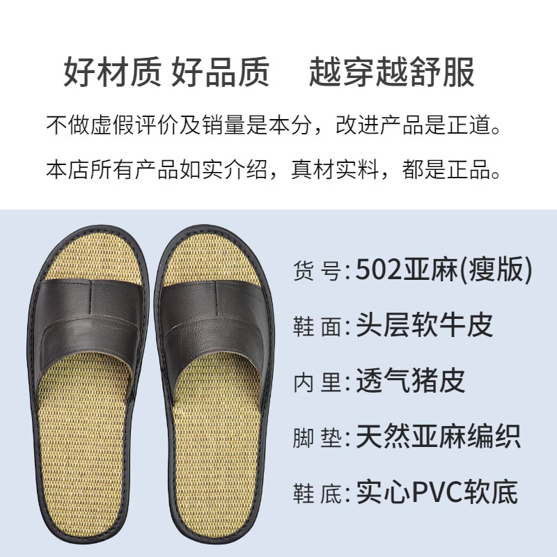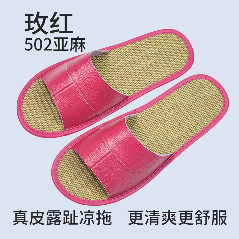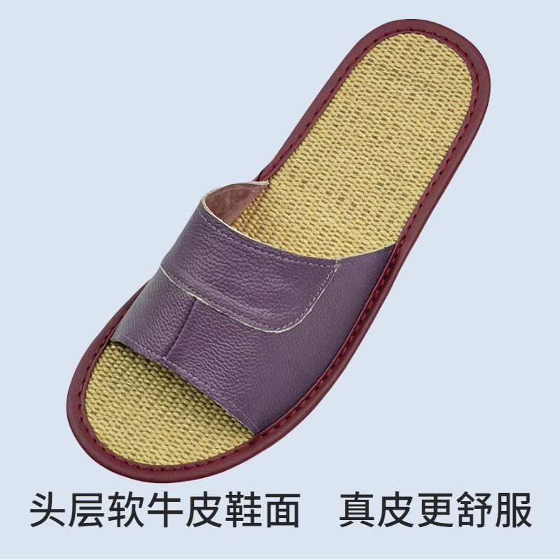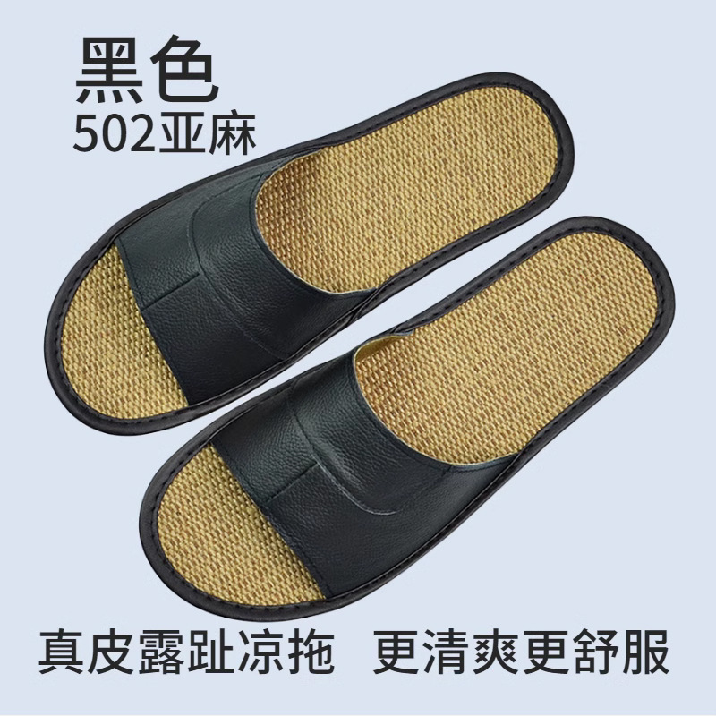 Тапочки из натуральной кожи Сандалии из первого слоя воловьей кожи и льна Тапочки на весну и лето для мужчин и женщин, домашние Нескользящие домашние с мягкой подошвой и открытым носком