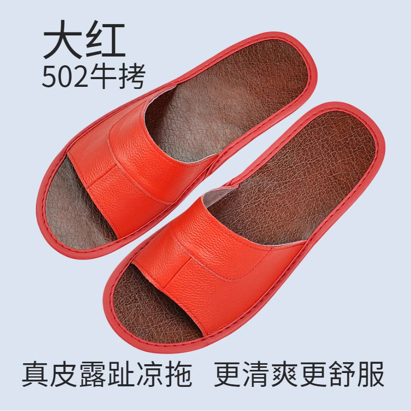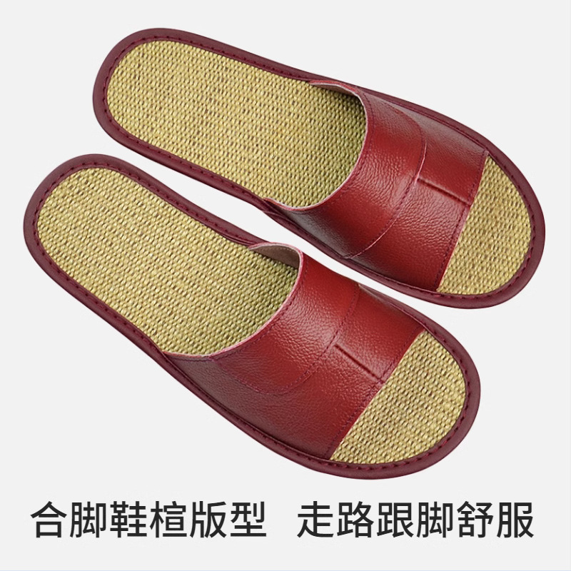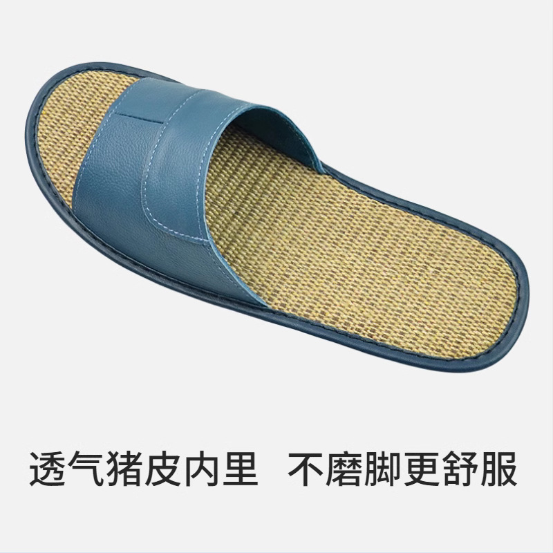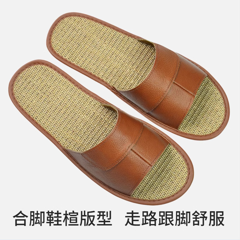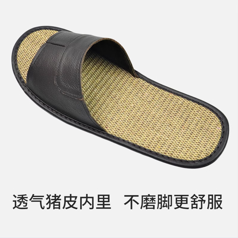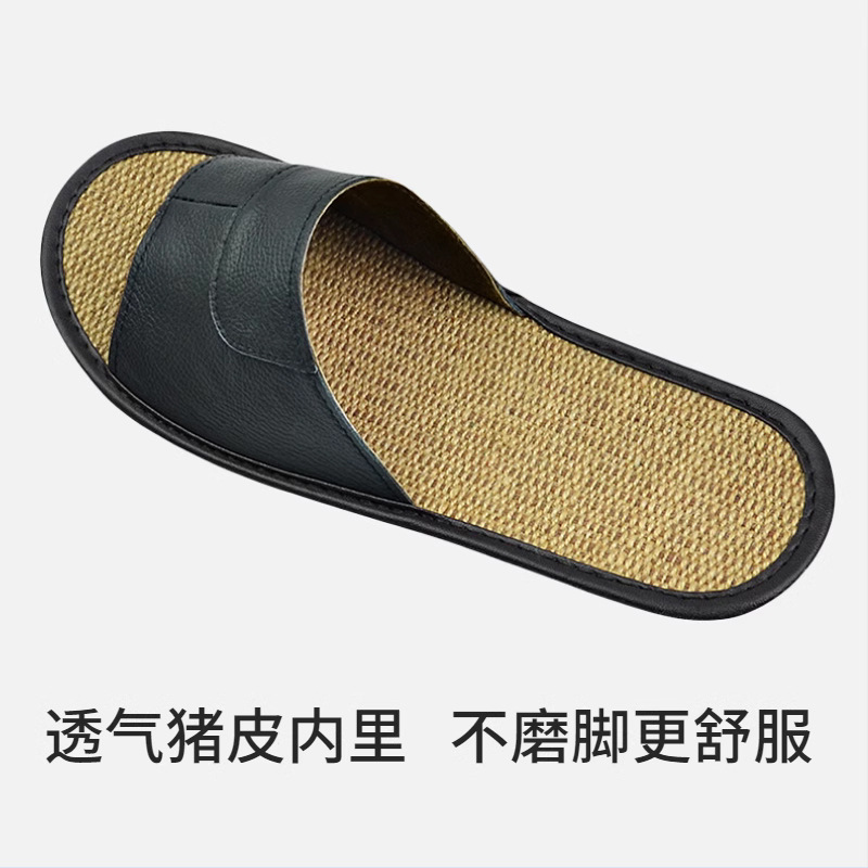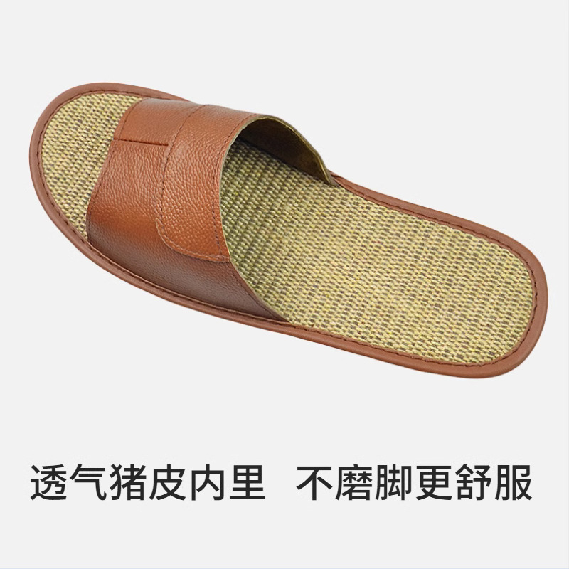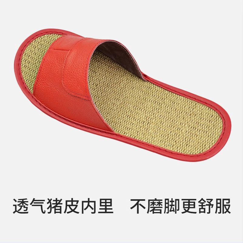 Тапочки из натуральной кожи Сандалии из первого слоя воловьей кожи и льна Тапочки на весну и лето для мужчин и женщин, домашние Нескользящие домашние с мягкой подошвой и открытым носком