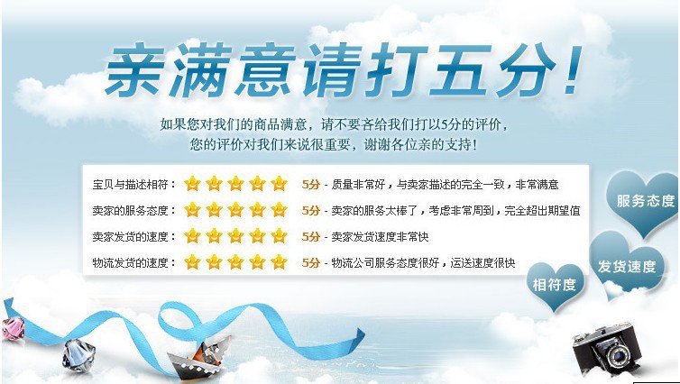 我们非常重视您的每一个评价!若您对这次交易满意,请别忘了给我们好评的支持哦。若不满意或有何意见或建议,敬请告诉我们以便改进!谢谢亲们一路的支持哦!