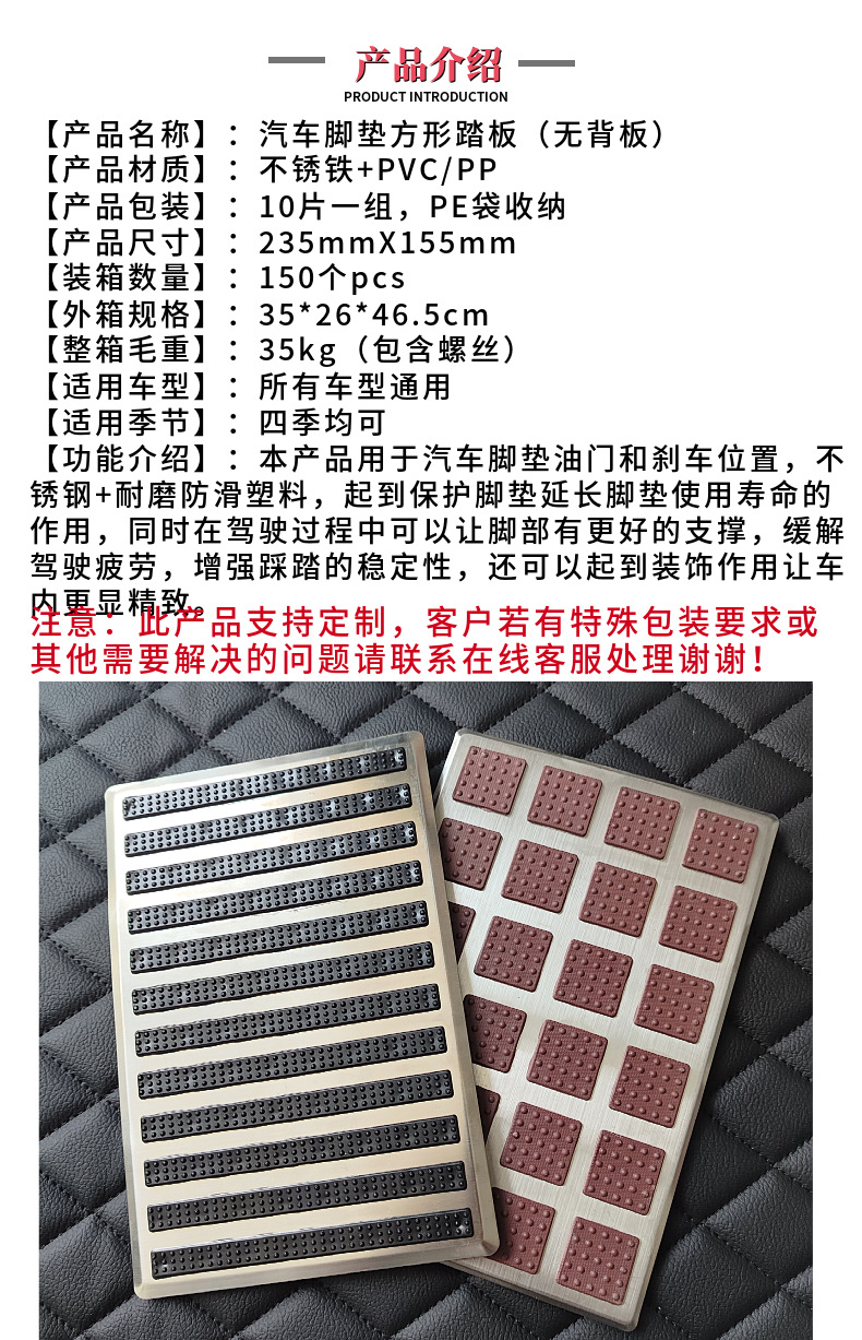 Квадратная педаль из нержавеющей стали, кожаные подушечки для ног, противоскользящая пластина, автомобильные подушечки для ног, аксессуары, аксессуары, противоскользящие