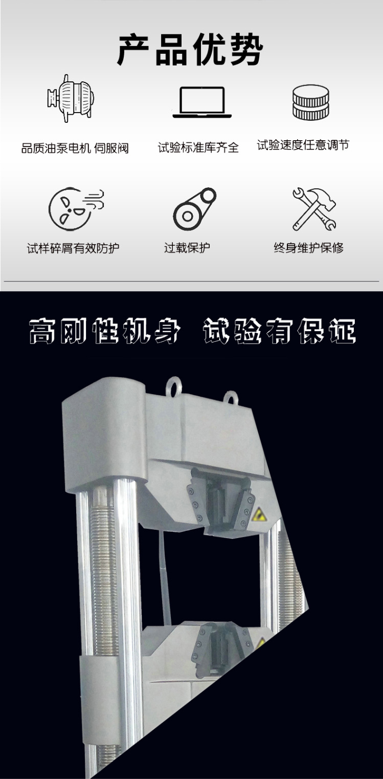 ZCWA-W600D型微机控制电液伺服万能试验机主机采用油缸下置式主机,主要用于 金属、非金属的拉伸、压缩和弯曲试验。适用于冶金、建筑、轻工、航空、航天、材料、大专院校、科研单位等领域。试验操作和数据处理符合 GB228-2002《室温材料 金属拉伸试验方法》的要求