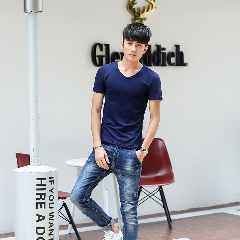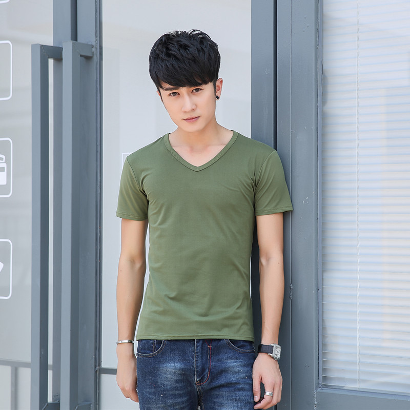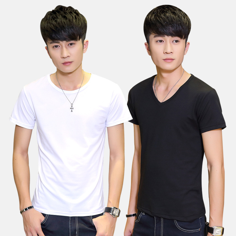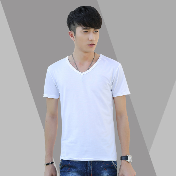 Новая Летняя мужская чисто белая мужская футболка с V-образным вырезом и короткими рукавами, Мужская однотонная Модная Повседневная Базовая рубашка с половинным рукавом, модная