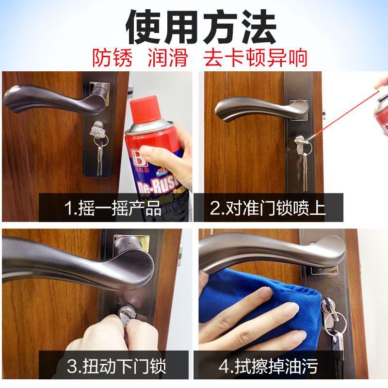 本品广泛适用于车辆、家庭、工厂、工具等因生锈而引起的不便。能渗透生锈部位、使生锈松脱。有清洁、润滑及保护各种机器和去除湿气、防止生锈等功能。