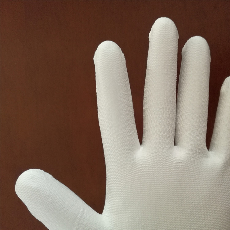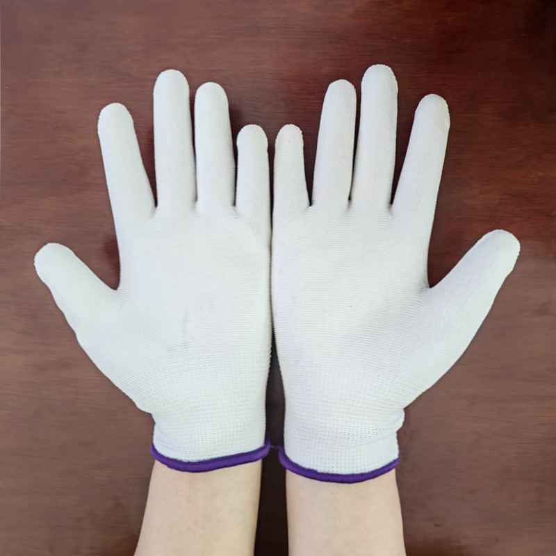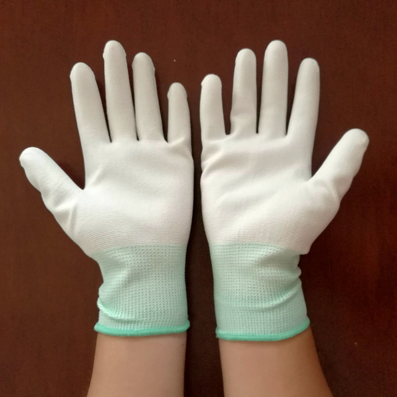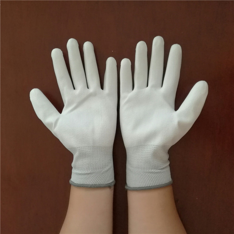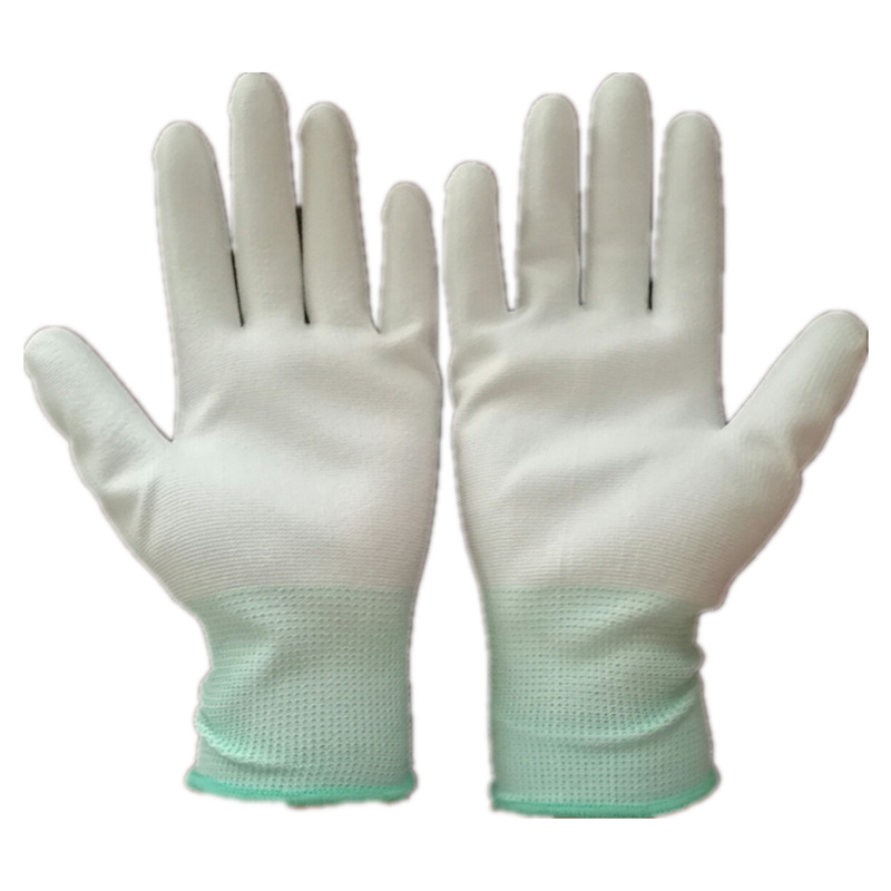 Пальмовые перчатки с полиуретановым покрытием, белый антистатический клей для окунания, нейлон с 13-контактным полиэстером, противоскользящие электронные