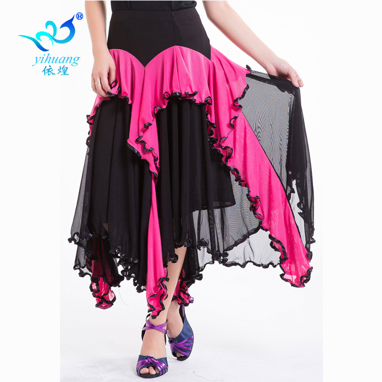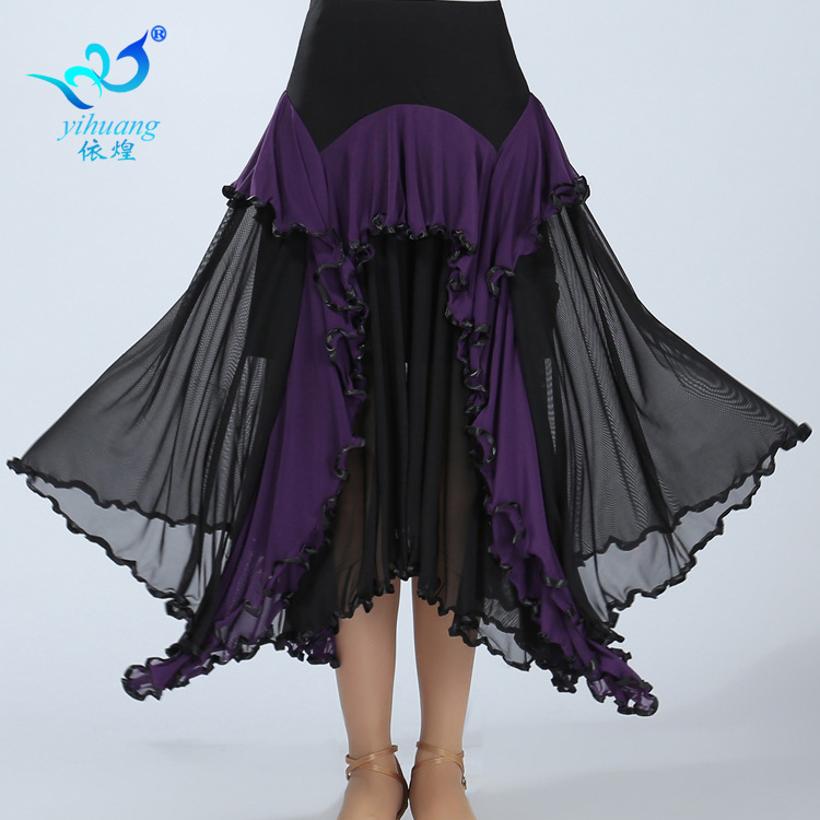 Юбка для современных танцев Юбка для бальных танцев Большая юбка-качели Одежда для танцевальных выступлений Летняя сетчатая юбка для бальных танцев