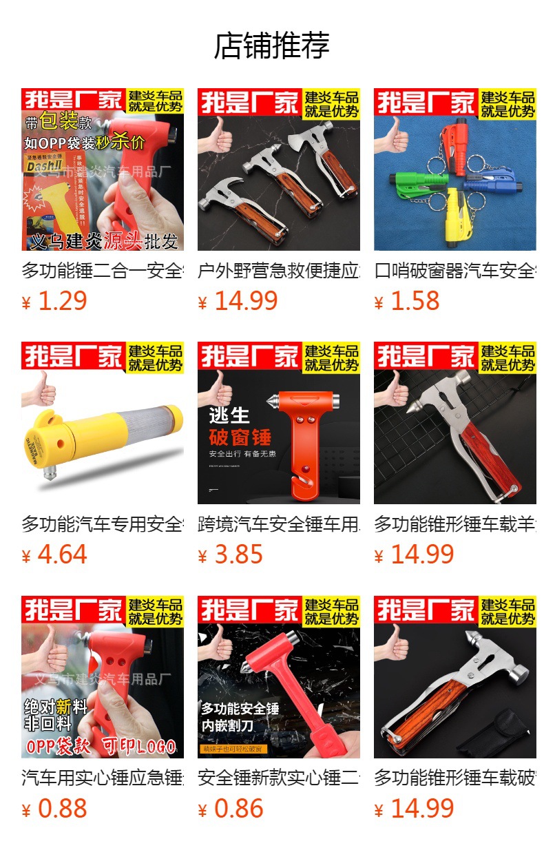 Автомобильный твердый молоток, аварийный молоток, спасательный спасательный молоток, оконный выключатель, многофункциональный автомобильный безопасный молоток «два в одном», производитель