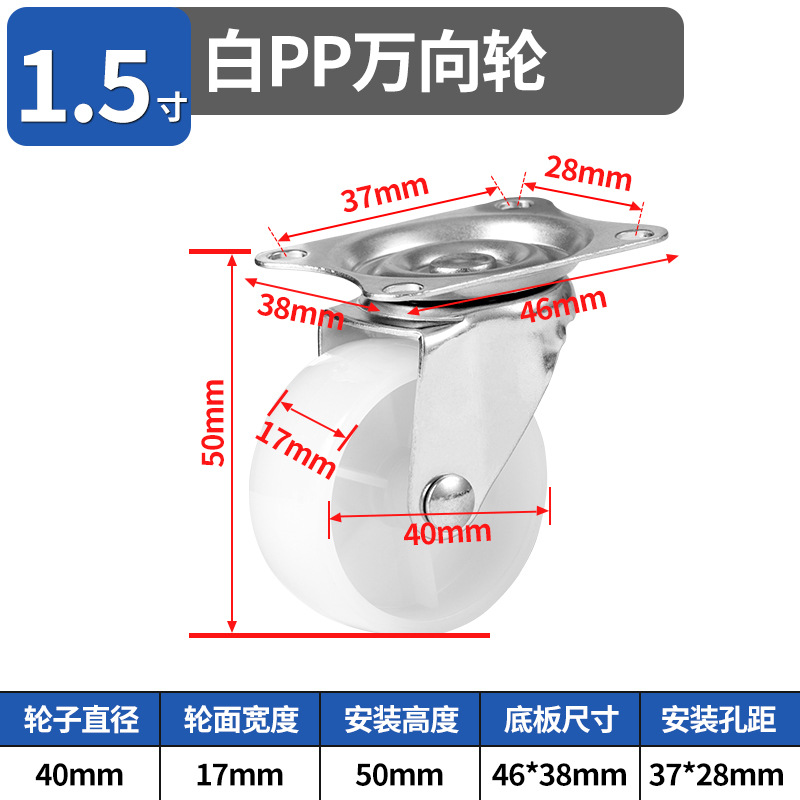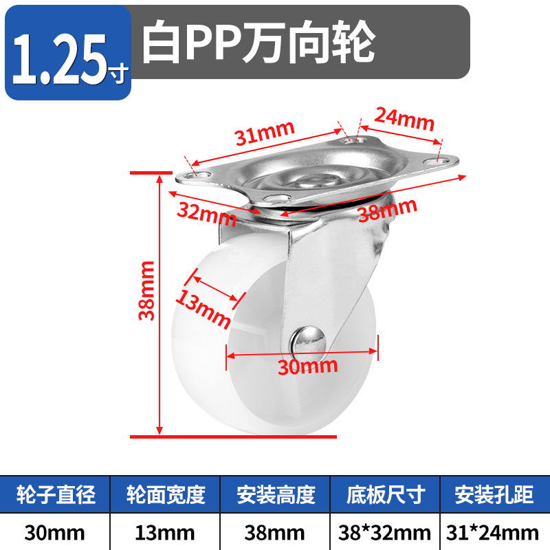 Нейлоновые поворотные ролики для прямых продаж, белые, из полипропилена, с направлением вращения 1.5inch 2inch градусов, маленькие колесики для журнального столика, клетки для животных, стеллажа для хранения