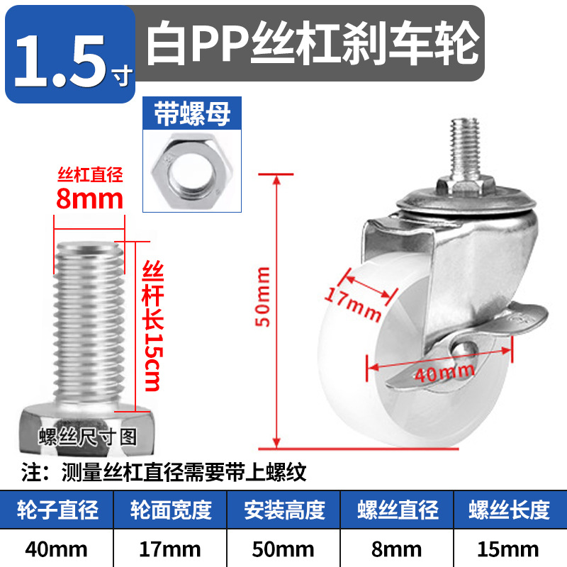 1-дюймовый белый PP ориентации; 1-дюймовый белый PP универсальный колесо; 1-дюймовая ориентация трека белого PP; 1,25-дюймовое белое PP плоское рулекое колесо; 1,25-дюймовый белый PP плоский универсальный колесо; 1,5-дюймовое белое PP плоское рулекое колесо; 1,5-дюймовый белый PP плоский универсальный колесо; 1,5-дюймовое белое PP плоское универсальный тормозное колесо; 1,5 дюйма белый PP стержень 8*15 универсальный колесо; 1,5-дюймовый белый винт PP 8*15 миллионов с тормозным колесом; 1,5-дюймовый белый PP стержень 10*15 универсальный колесо; 1,5-дюймовый белый винт PP 10*15 миллионов с тормозным колесом; 2-дюймовое белое PP плоское рулекое колесо; 2-дюймовый белый PP плоский универсальный колесо; 2-дюймовое белое PP плоское универсционное тормозное колесо; 2-дюймовый белый PP стержень 8*15 универсальный колесо; 2-дюймовый белый винт PP 8*15 миллионов с тормозным колесом; 2-дюймовый белый PP стержень 10*15 универсальный колесо; 2-дюймовый белый винт PP 10*15 миллионов с тормозным колесом