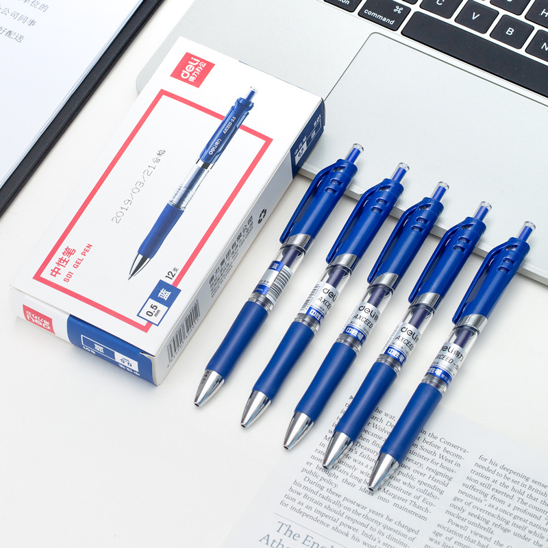 Ручка гелевая Deli Stationery S01, выдвижная, 0.5 мм, с пружинным наконечником, для офиса, деловая, для подписи, быстросохнущие чернила