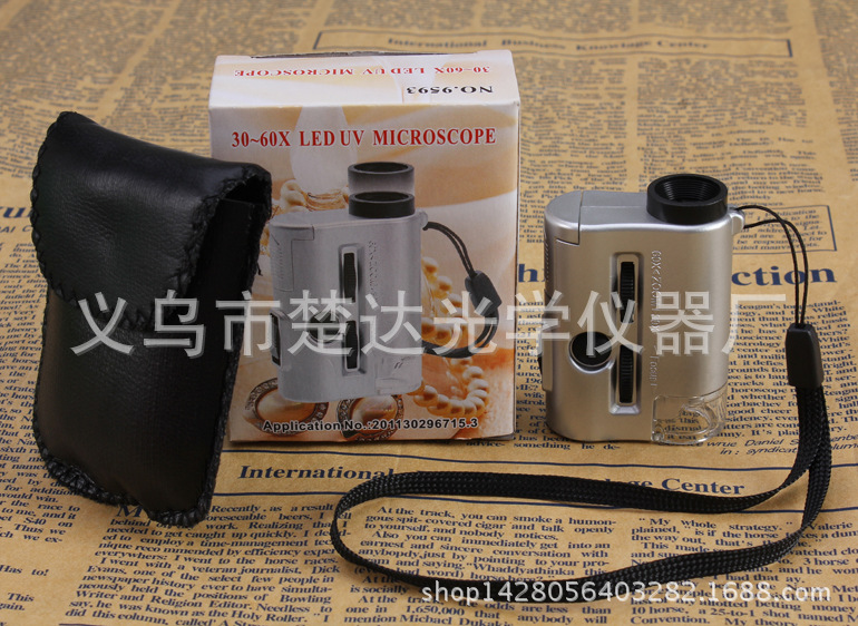 30-60 раз с карманным портативным многофункциональным микроскопом/увеличительным стеклом со светодиодной УФ-подсветкой