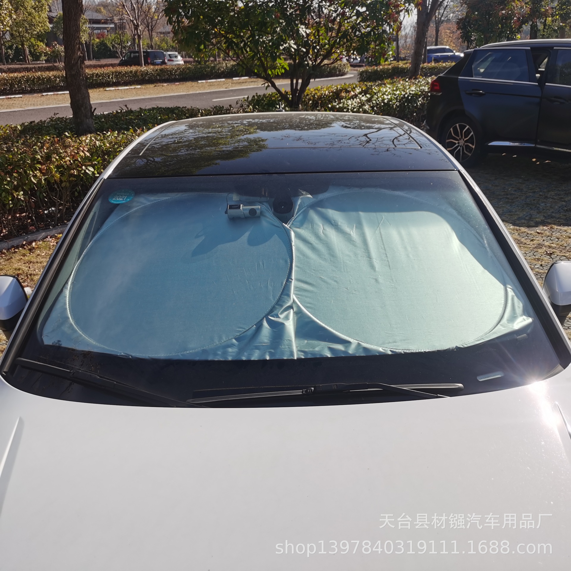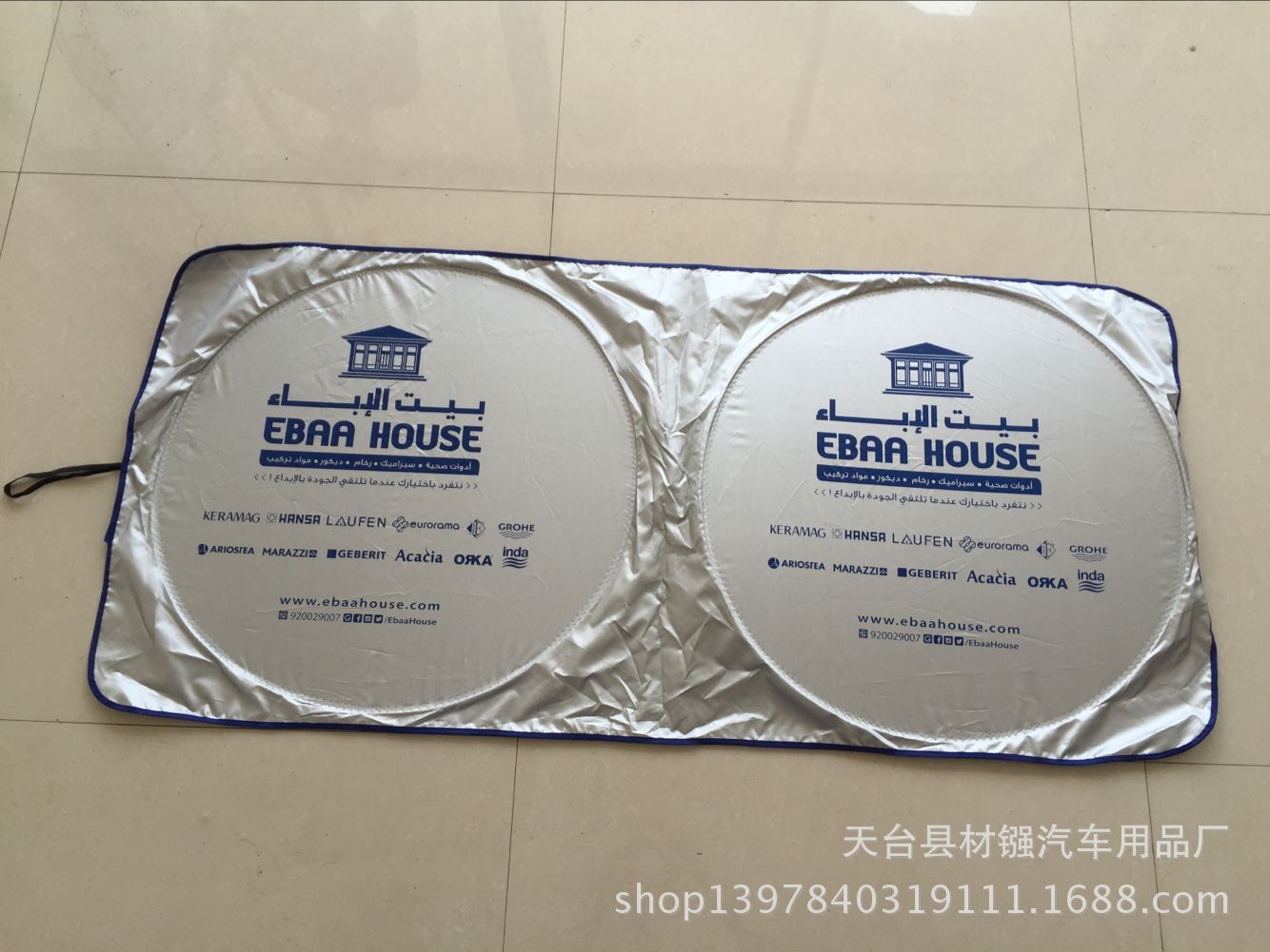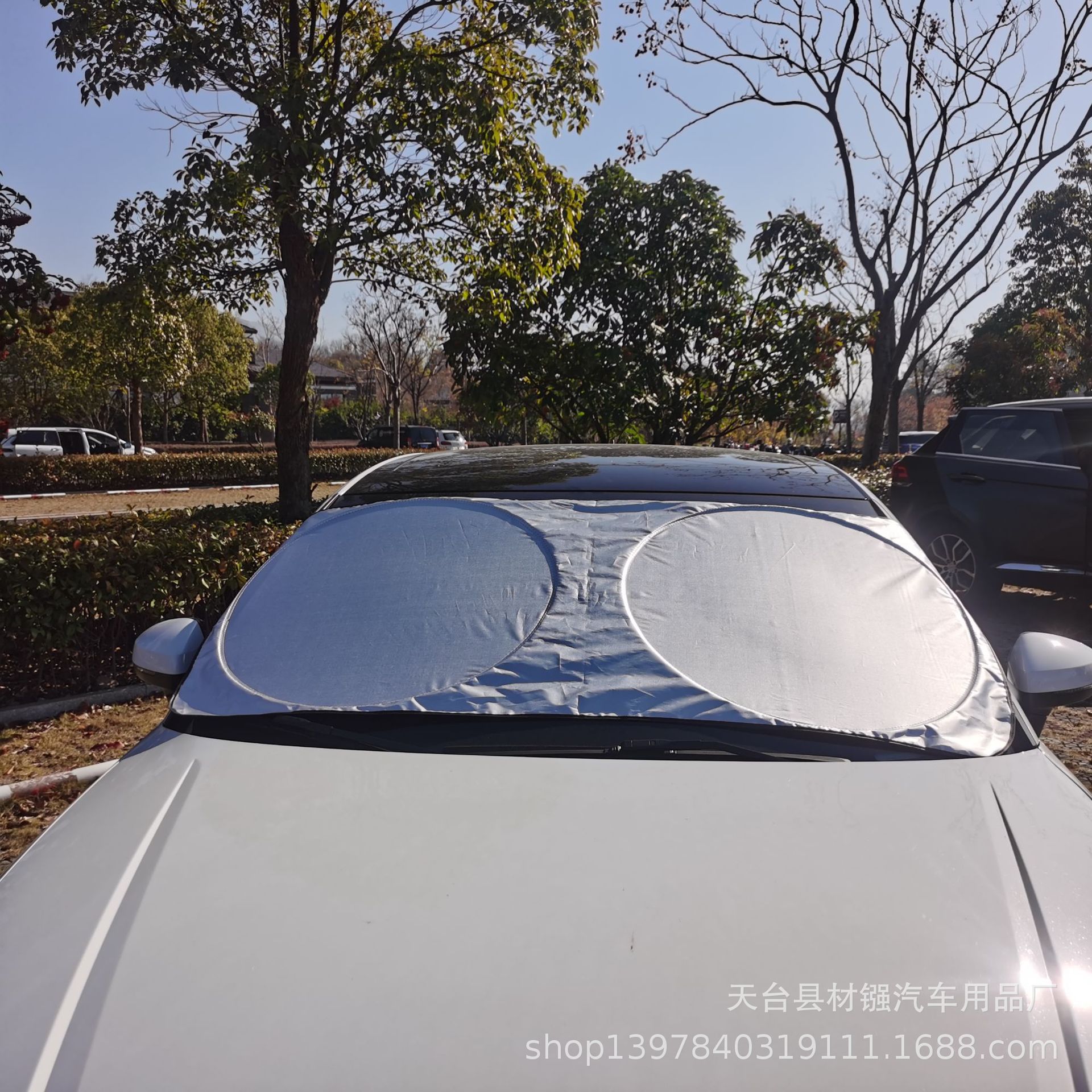 Солнцезащитный козырек для автомобиля из серебристой полиэстеровой ткани, с серебряной клейкой лентой, 142*67, двойной петлевой крепление, с возможностью нанесения рекламной печати, теплоизоляция