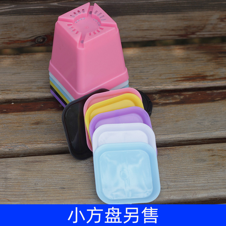 Лоток Мини-цветочный горшок Красочный Квадратный маленький цветочный горшок Мягкий цветочный горшок Горшок для рассады Пластиковый цветочный горшок только с подносом