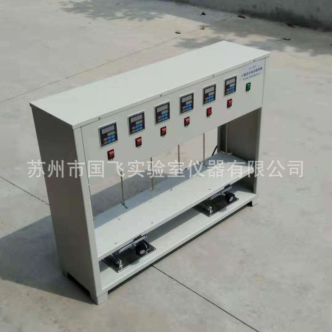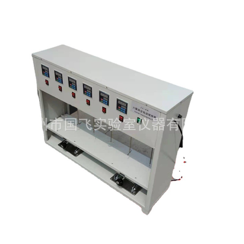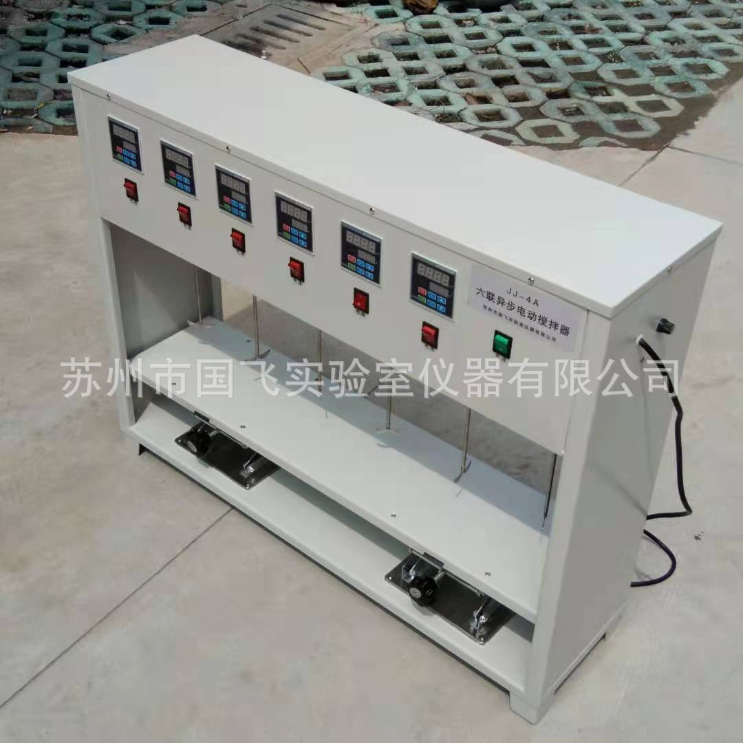 JJ-4A型六联异步混凝搅拌器。可自动调节搅拌高度,提高了搅拌效果。另外速度及温度均数字显示,操作一目了然,提高了不同需求的实验场合。