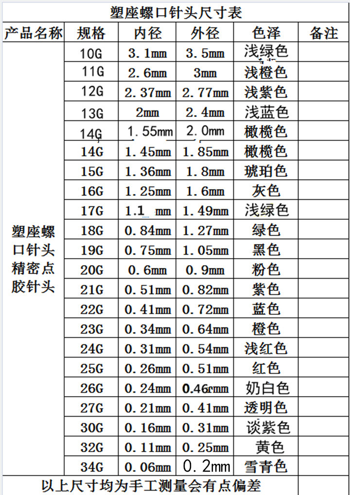 基本是每种颜色代表针头的一个内径。量大从优