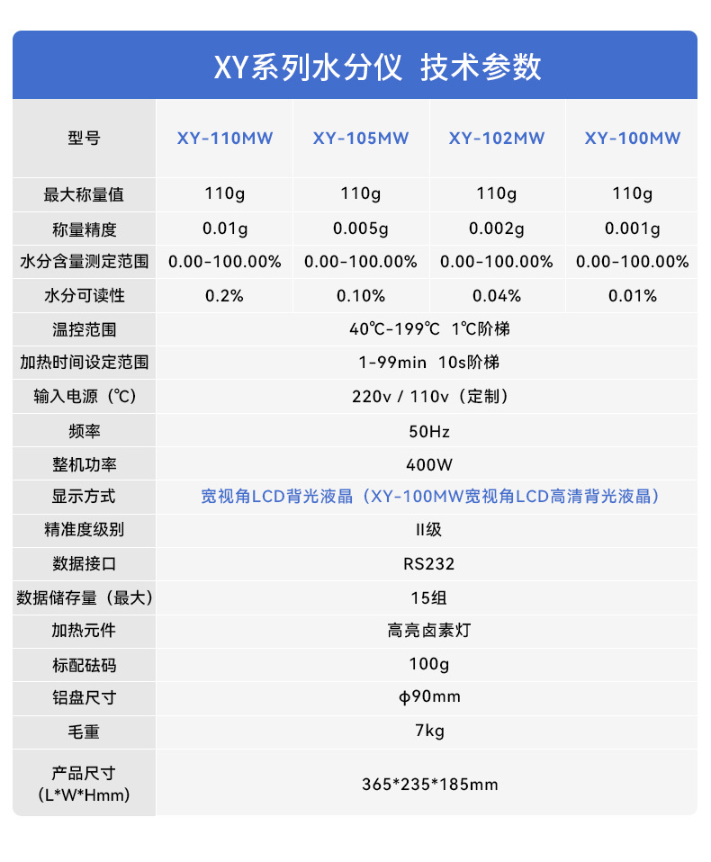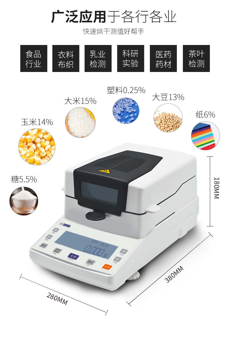 注:水分测定误差基于5%标准氯化钠溶液,水分重复性误差基于企业样品标样在实验室条件测试数据。