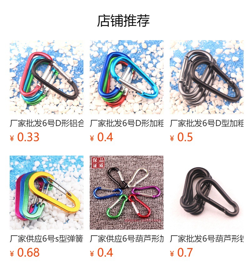 斌达五金制品有限公司,集生产加工销售服务为一体。专业销售.钥匙挂件.登山扣,饰品配件等系列产品。产品广泛应用于小电器,钥匙配饰,饰品厂的配套供应商。本公司拥有10余年的生产销售经验,高素质的管理队伍,高水平技术人员,及一大批训练有素的熟练工人。我们遵循以质量求生存,以技术求发展,以市场为导向,以服务为宗旨的经营理念,为客户全方位服务,目前客户遍布全国各地远销国外。我们愿为各界同仁精诚合作,共创辉煌。
