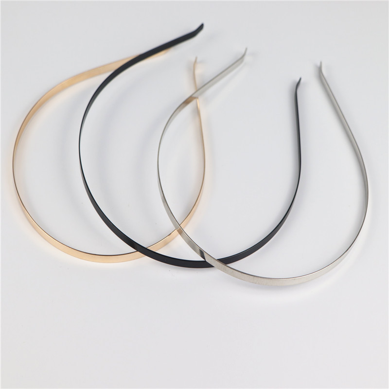 畅销5毫米镀白K钢发箍,有白K、金色、黑色三个颜色,常用规格有3.4.5.6.7.10毫米。这款发箍除了两端稍微翘起外,还有款直头的,一般长度是37厘米左右,也有加长的,可以定做。这款发箍一般做配件用,可以绕布和包布,贴布等。