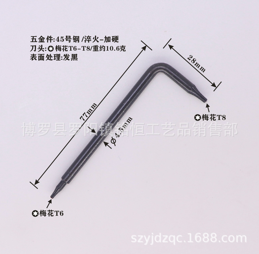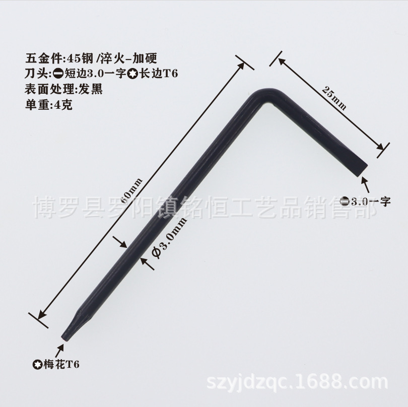 十字和T8扳手3*25*70发黑: 产品单重4.35克