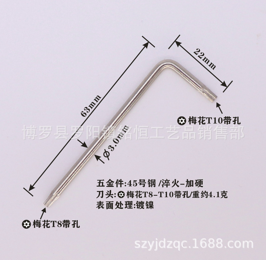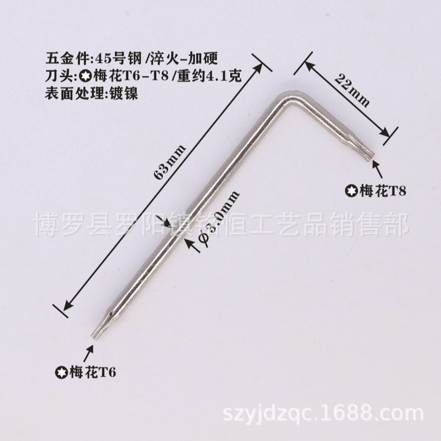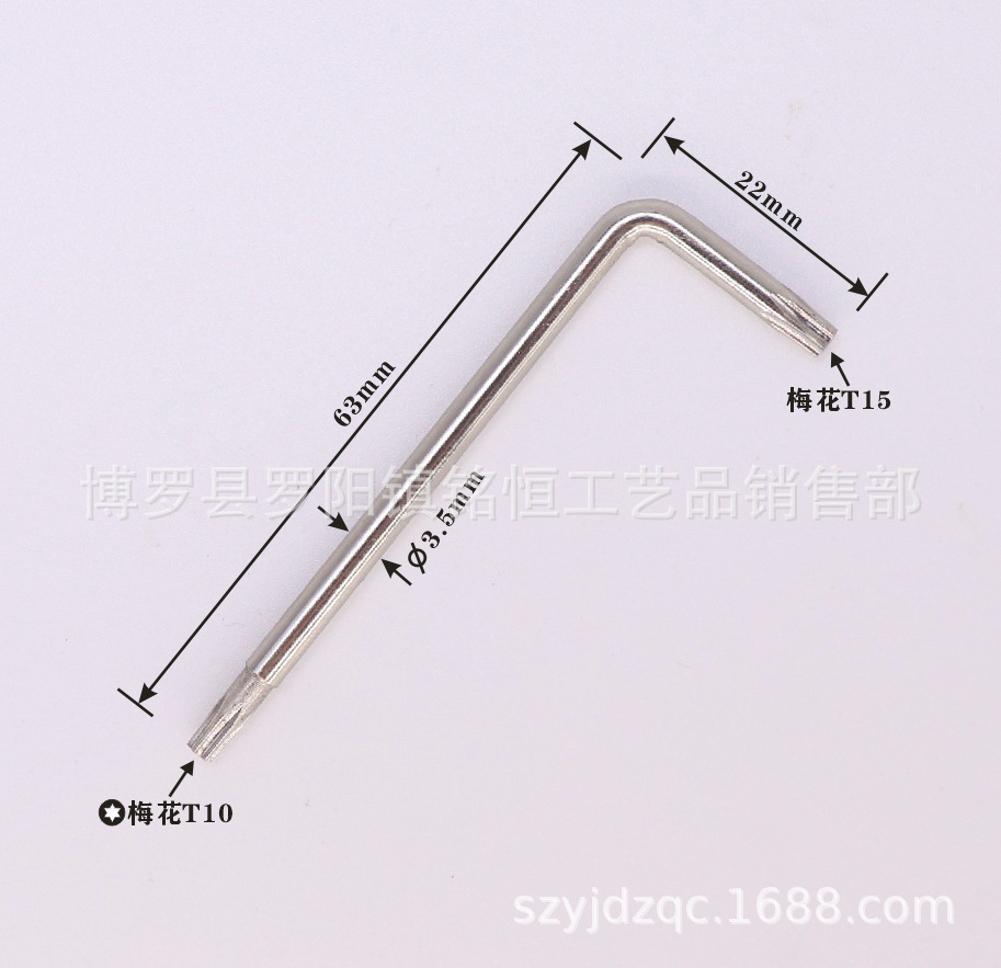 刀杆粗3.5mm,长边(T10梅花锥头)63MM,短边(T15梅花锥头)22MM