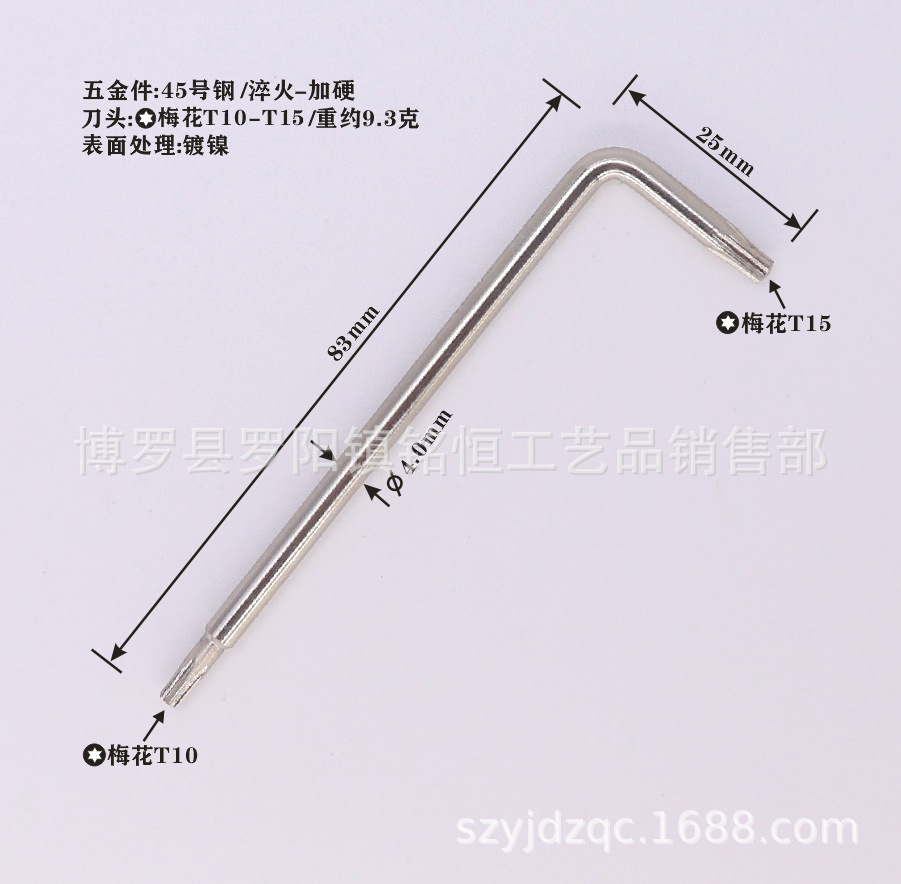 刀杆粗4mm,长边(T10梅花锥头变径)83MM,短边(T15梅花锥头)25MM