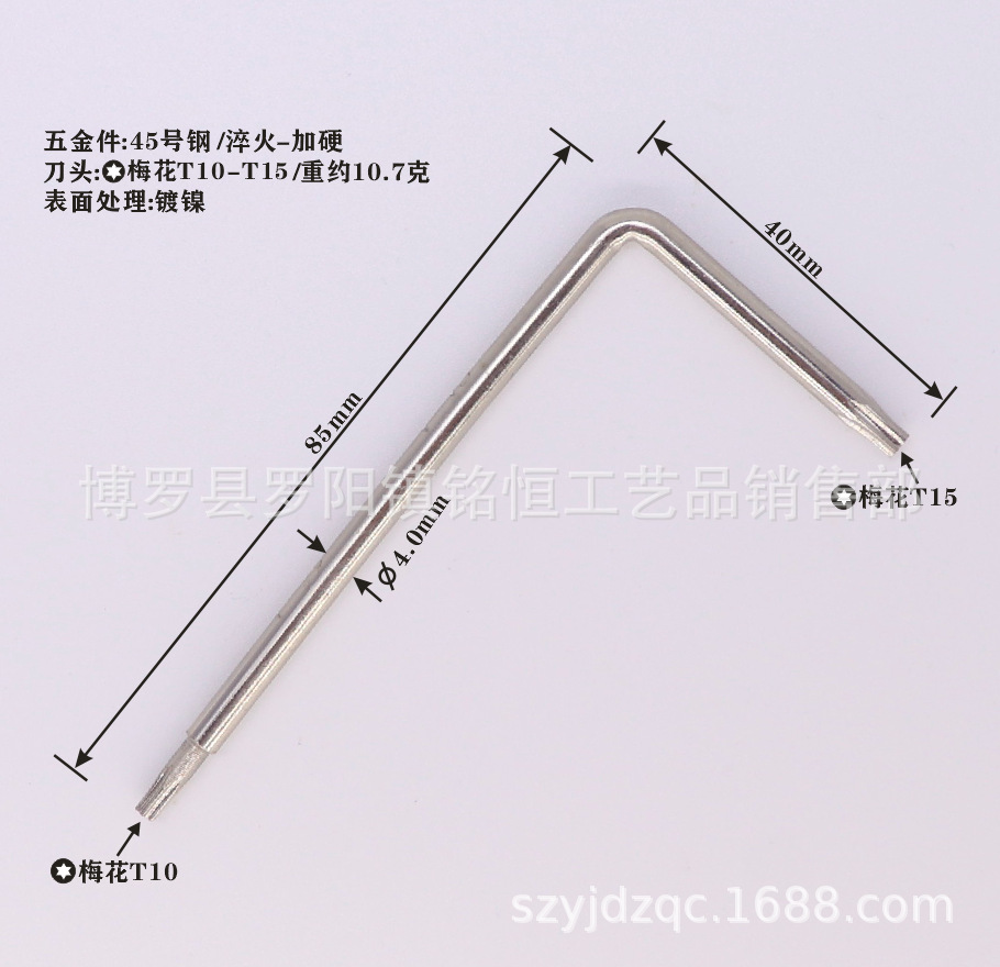 刀杆粗4mm,长边(T10梅花锥头变径)85MM,短边(T15梅花锥头)40MM