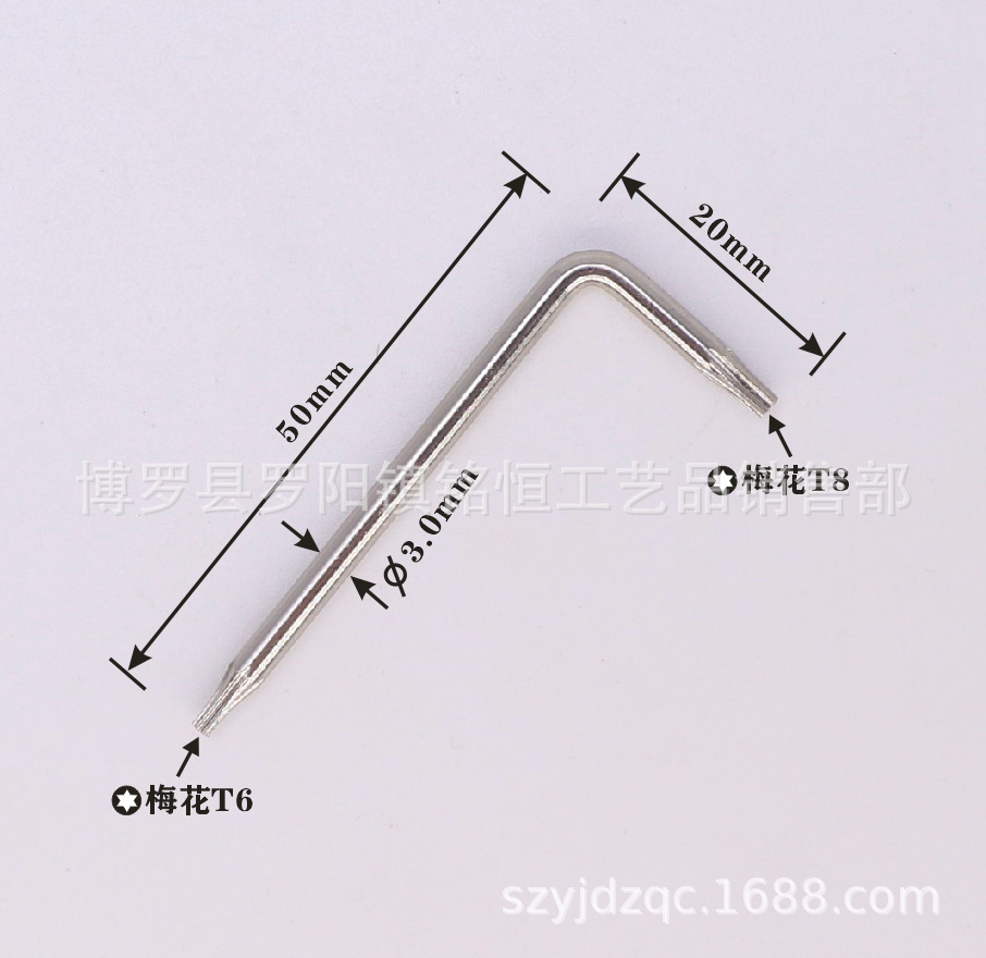 刀杆粗3mm,长边(T6梅花)70MM,短边(2MM内六角)25MM,